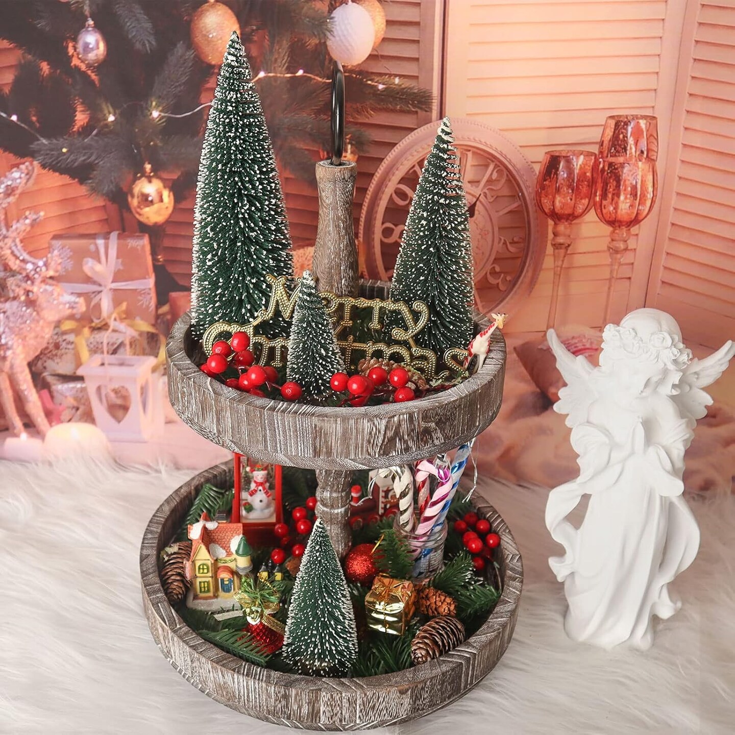 Mini Christmas Tree, Small Pine Tree with Wooden Bases for Xmas Holiday Party Home Tabletop Tree Decor (Green 4pcs)