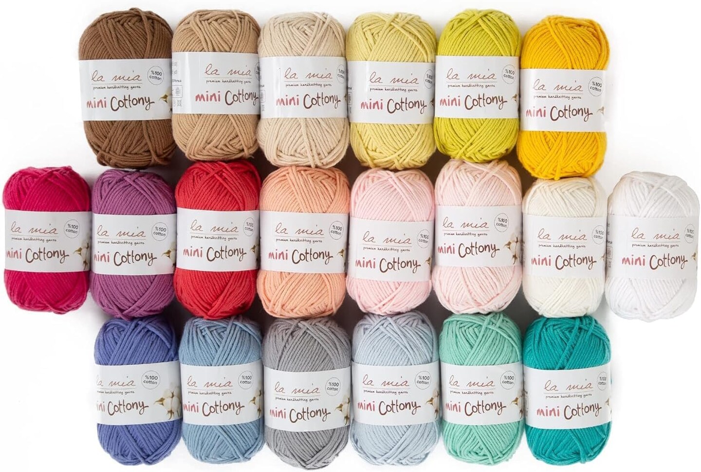 Mini Cotton Yarn Set – 20 Skeins, 100% Premium Cotton, 0.88 oz / 65 yds Each, Light DK #3 Baby Yarn, Assorted Colors, Soft & Beginner-Friendly (V1)