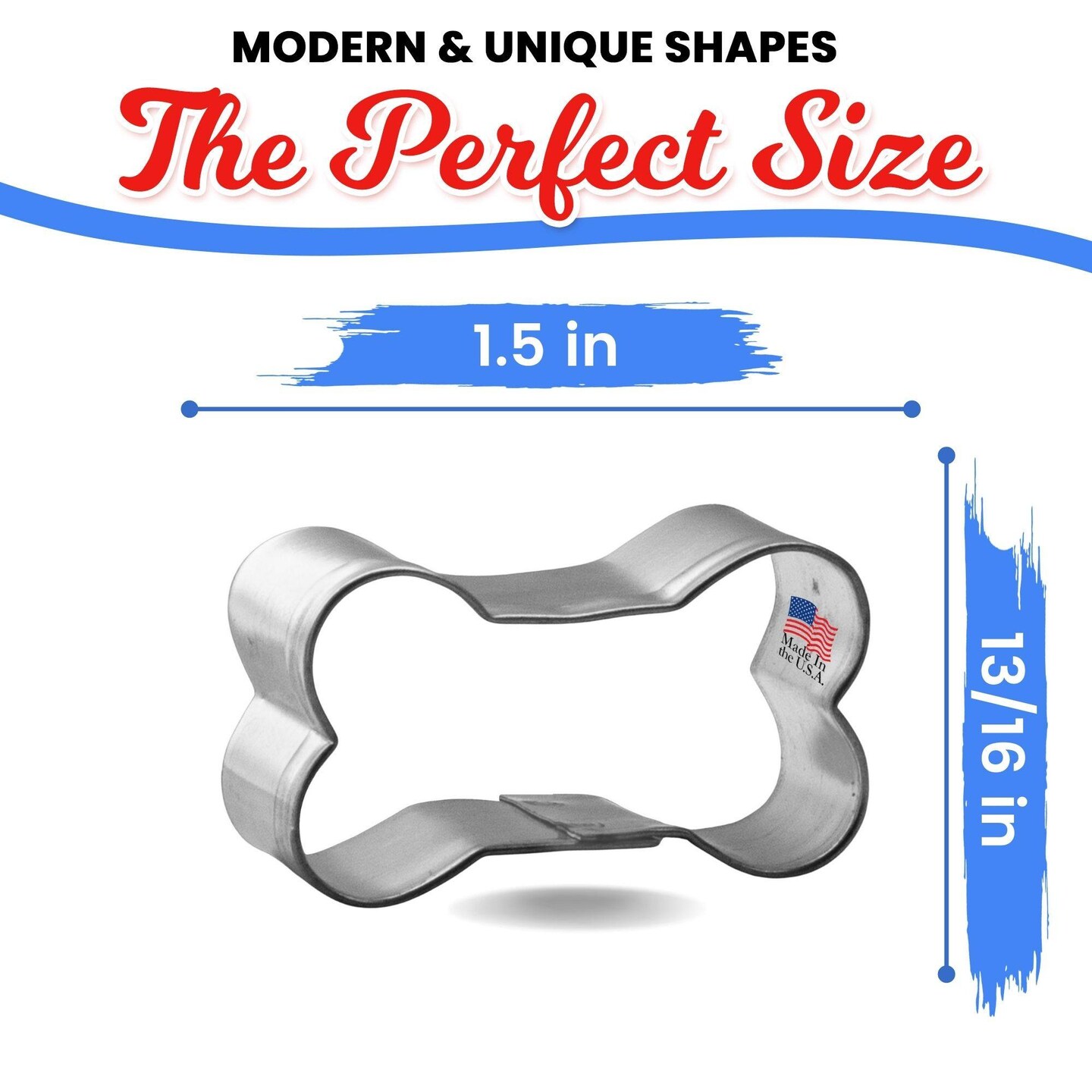Mini Dog Bone Cookie Cutter 1.5 in M196, CookieCutter.com, Tin Plated Steel, Handmade in the USA