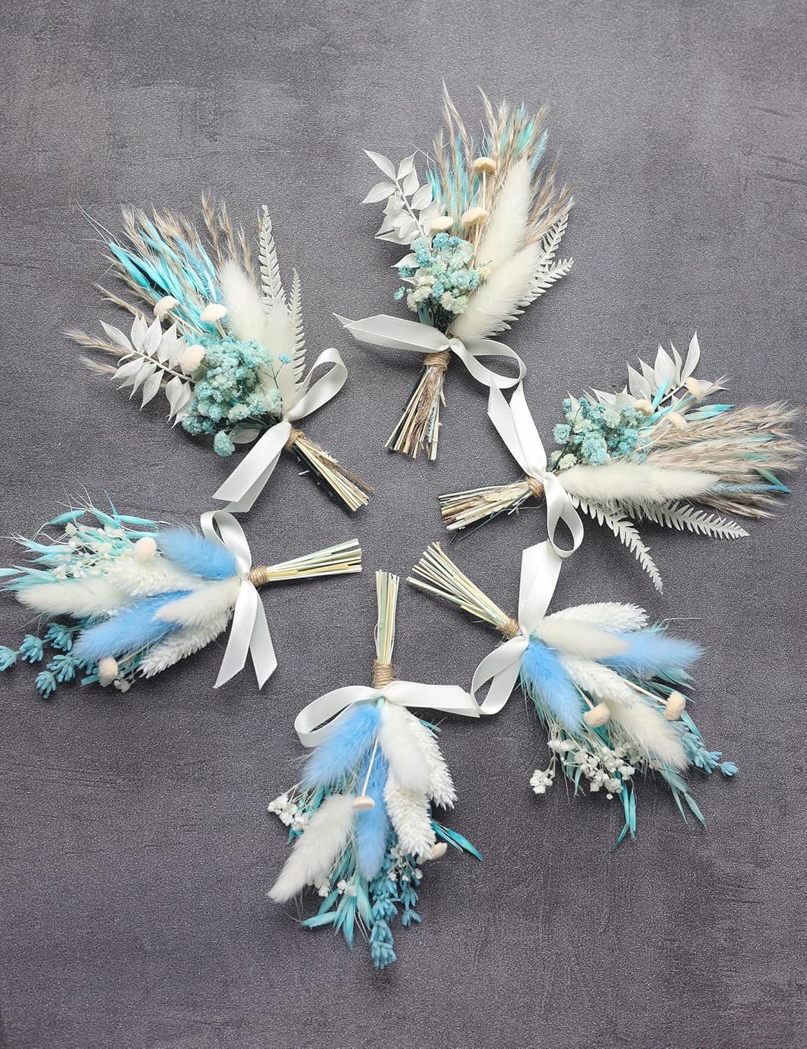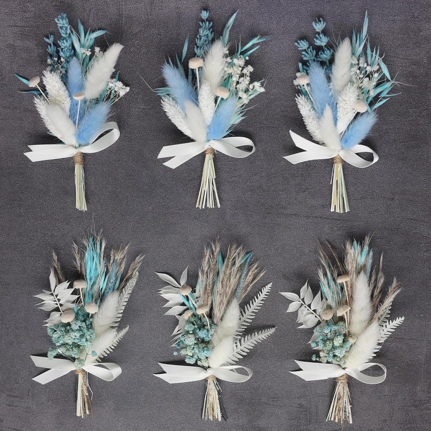 Mini Dried Flower Bouquet Set (6 pcs), Small Blue Bouquet, Boho Wedding Dinner Plate Decoration, Home Wall Decoration, Bridesmaid Flower Girl Proposal Gift Box, Card Decoration. (Blue)