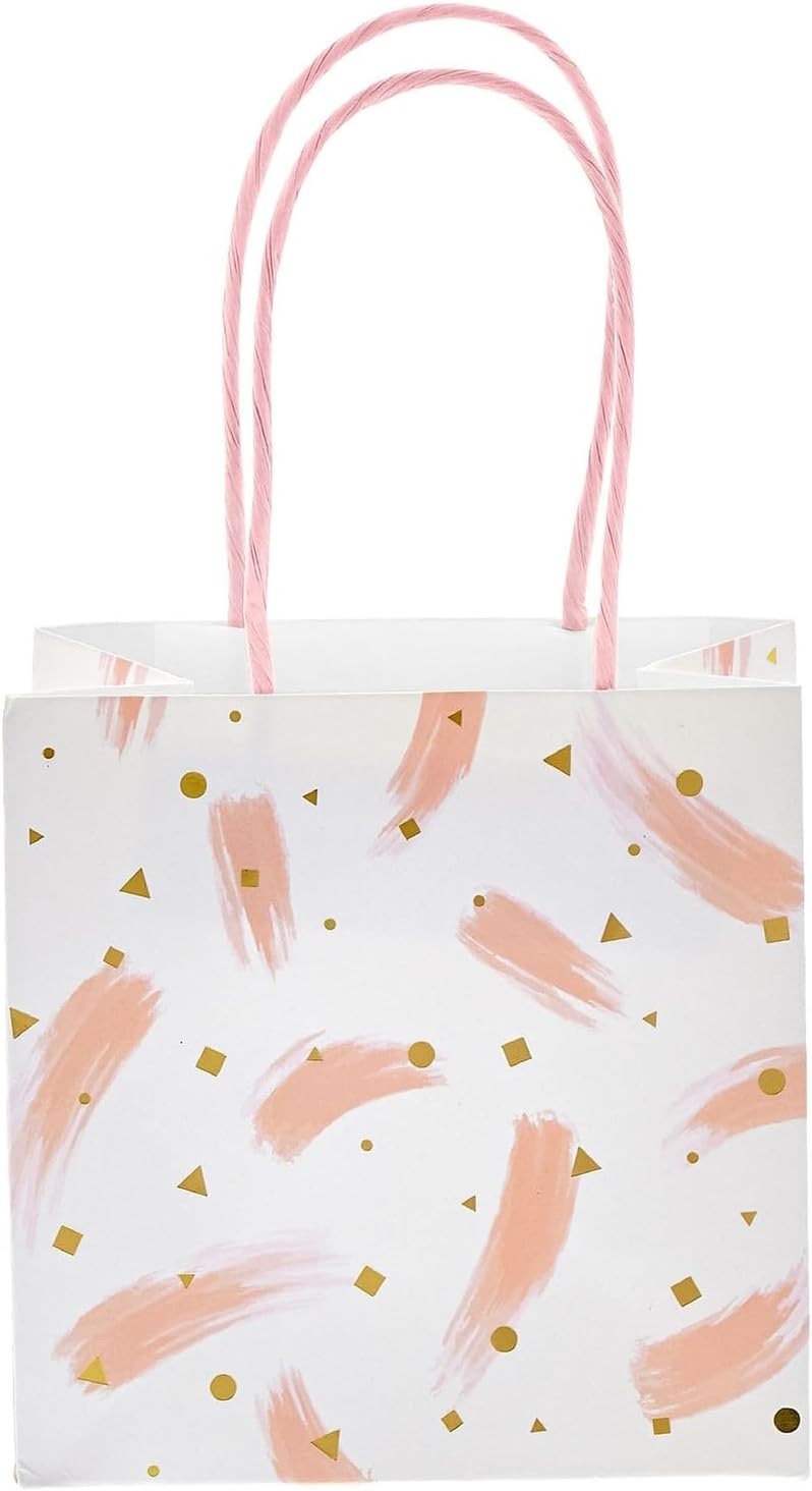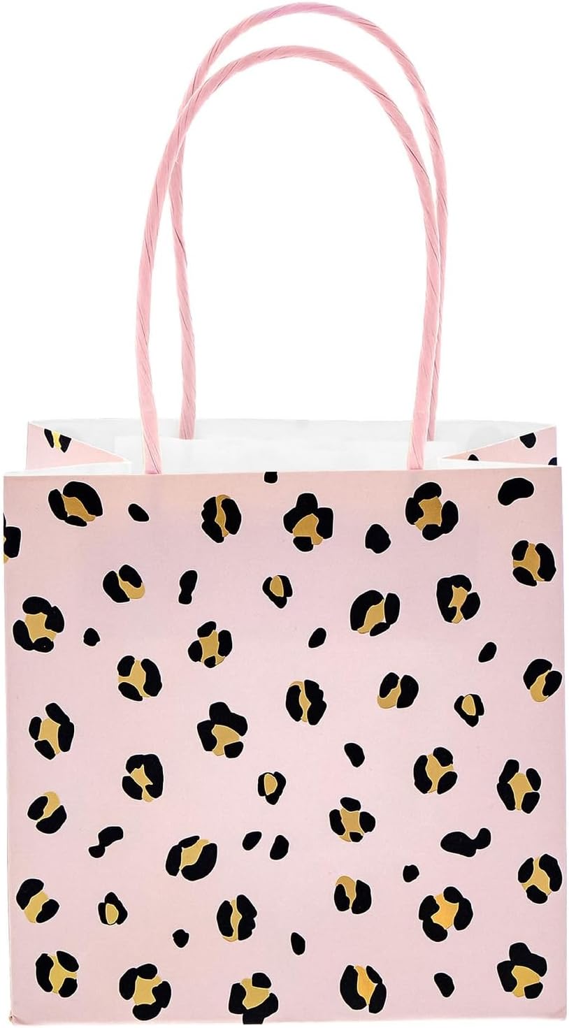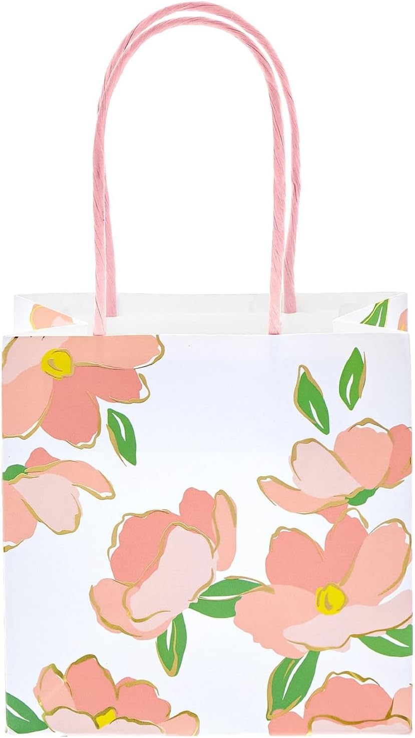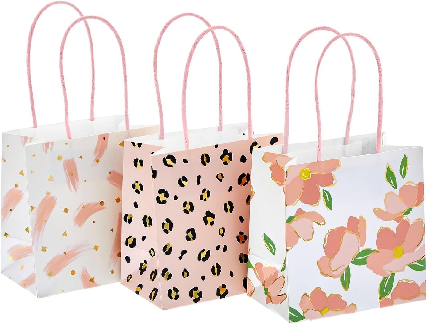Mini Floral & Animal Gift Bags with Handles (12-Pack) – Pink Party Favor Bags, 5 x 5 x 3 In, Cute & Elegant Mini Bags for Jewelry, Candy, Weddings & Showers (Gold,Pink)