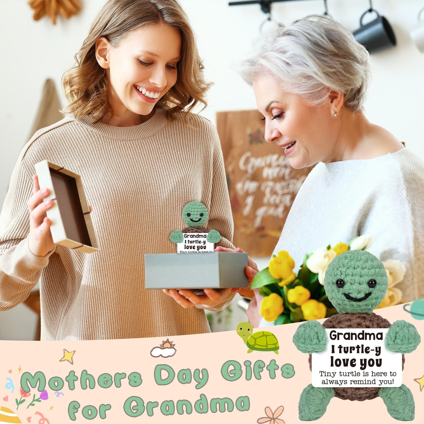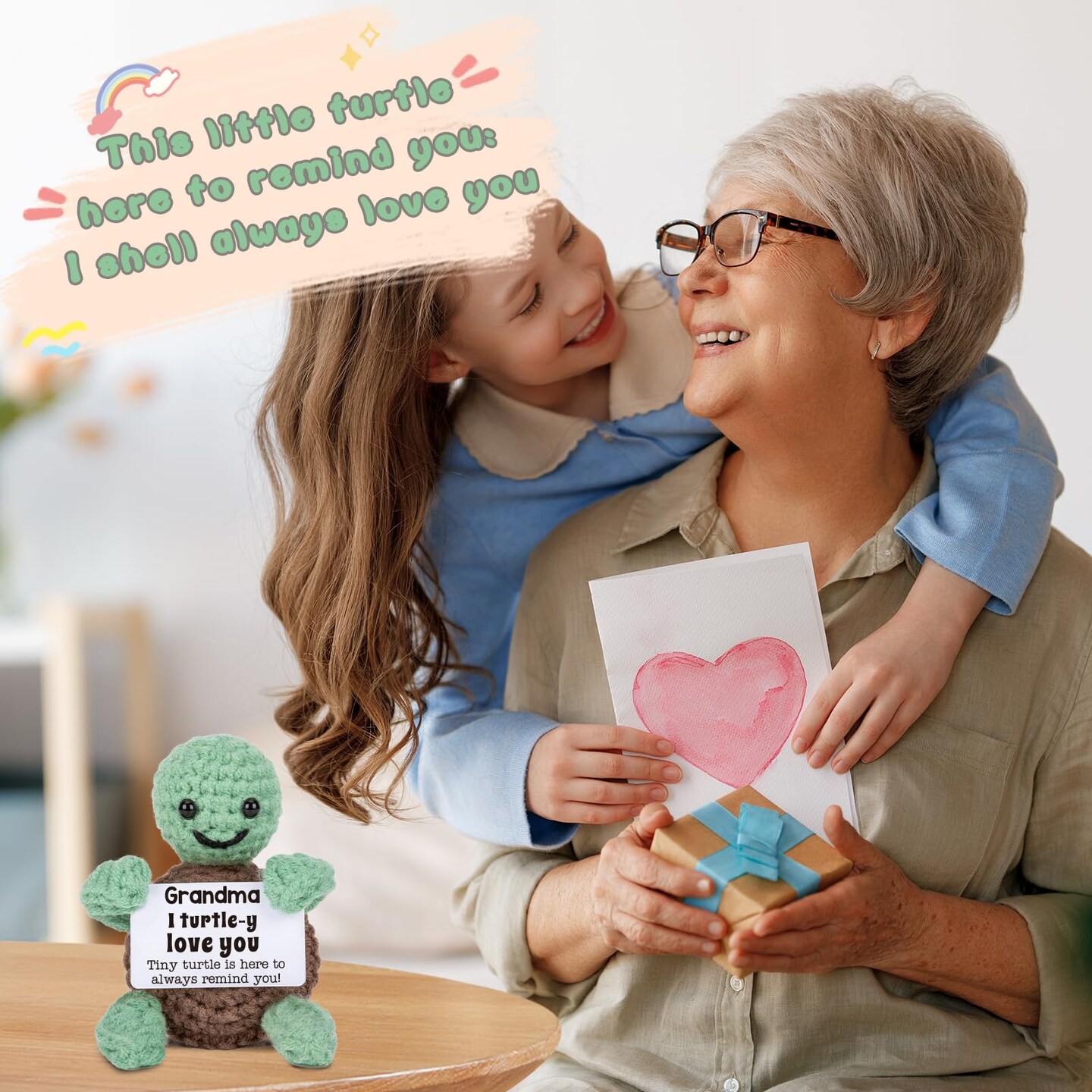 Mini Funny Turtle Grandma Gifts, Easter Mothers Day Birthday Gifts for Grandma from Granddaughter Grandson Grandkids, Nana Gigi Love Small Cute Stuff Things, Handmade Emotional Positive Crochet Turtle