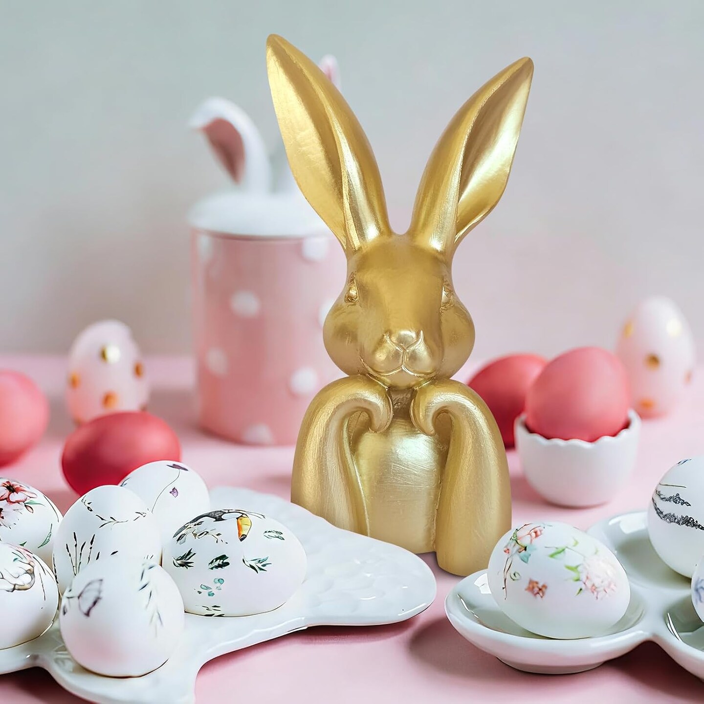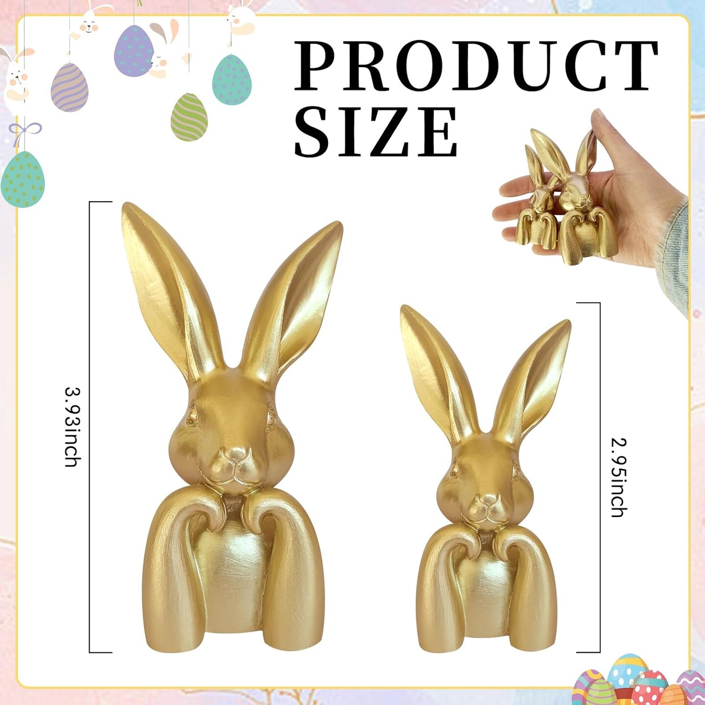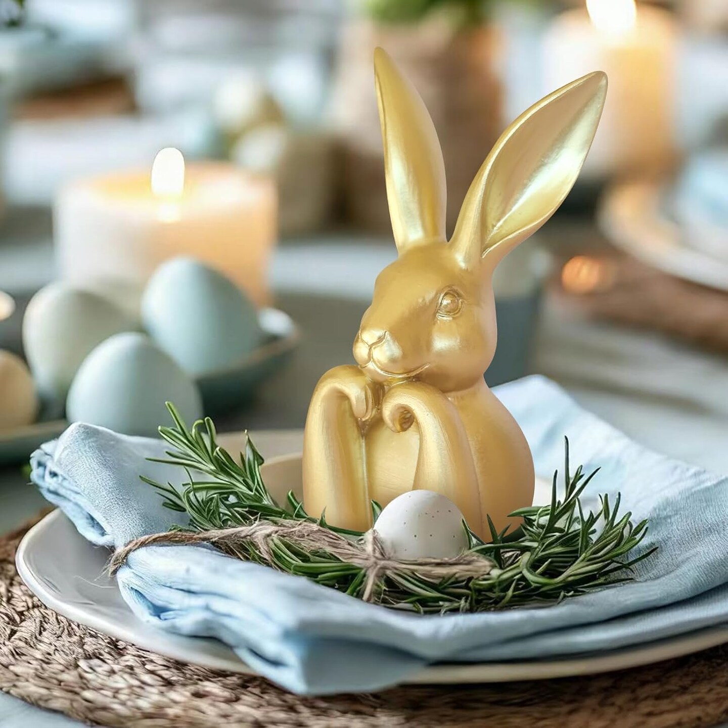 Mini Golden Easter Bunny Figurines – Resin Rabbit Statues for Spring Home Decor, Table Centerpiece, Mantel, Shelf, Vintage Brass-Style Bunny Sculptures