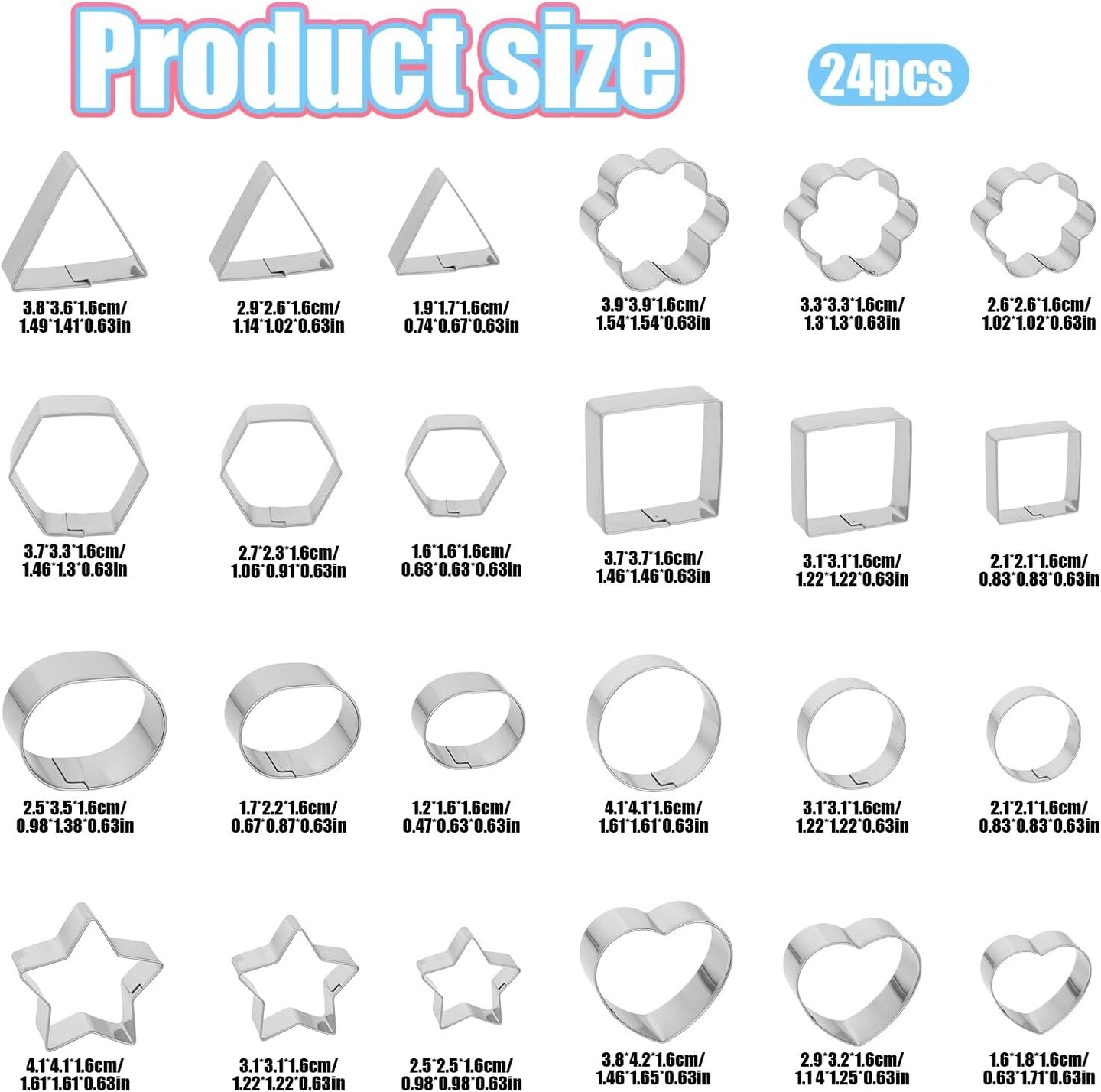 Mini Metal Cookie Cutter Set with Box 24 Pieces