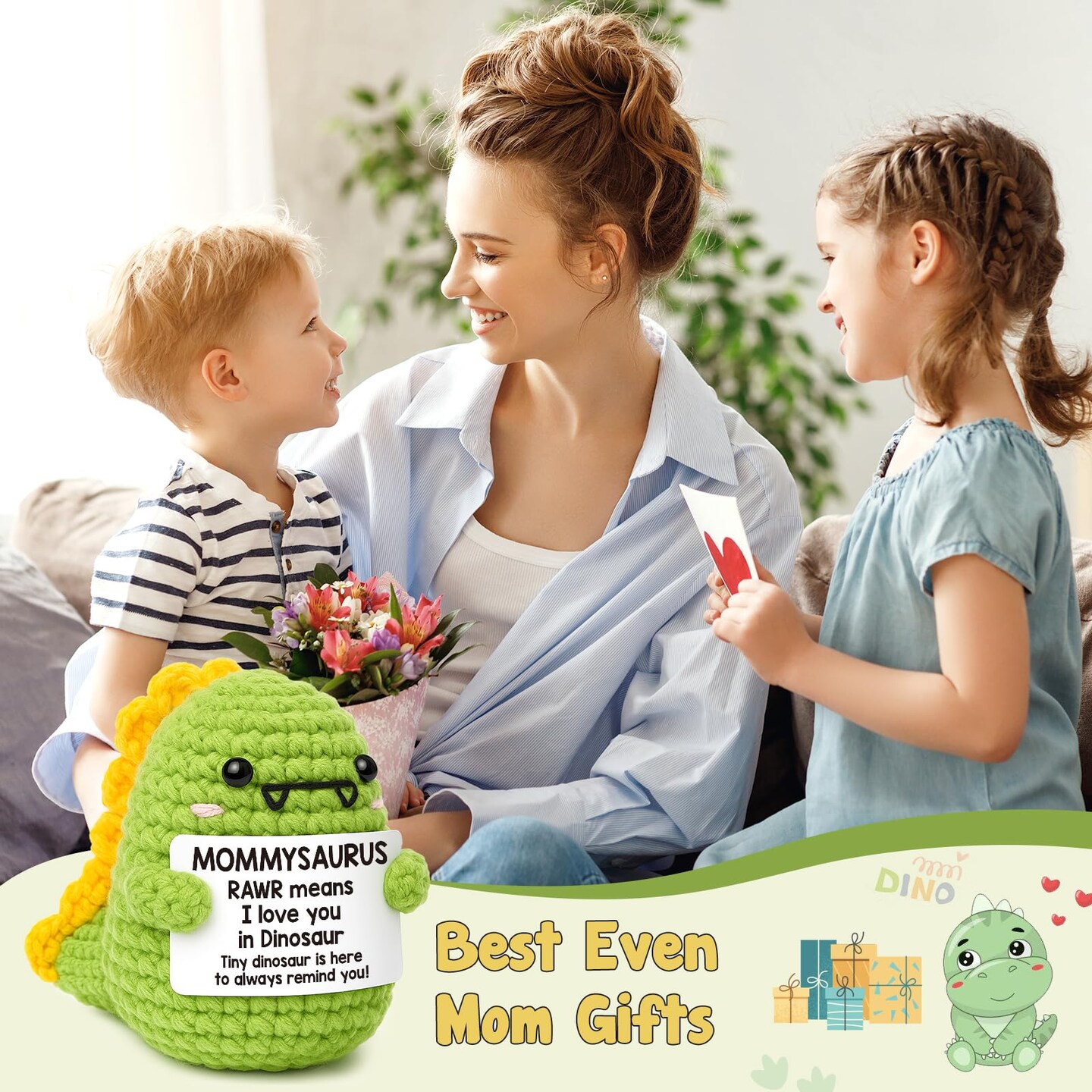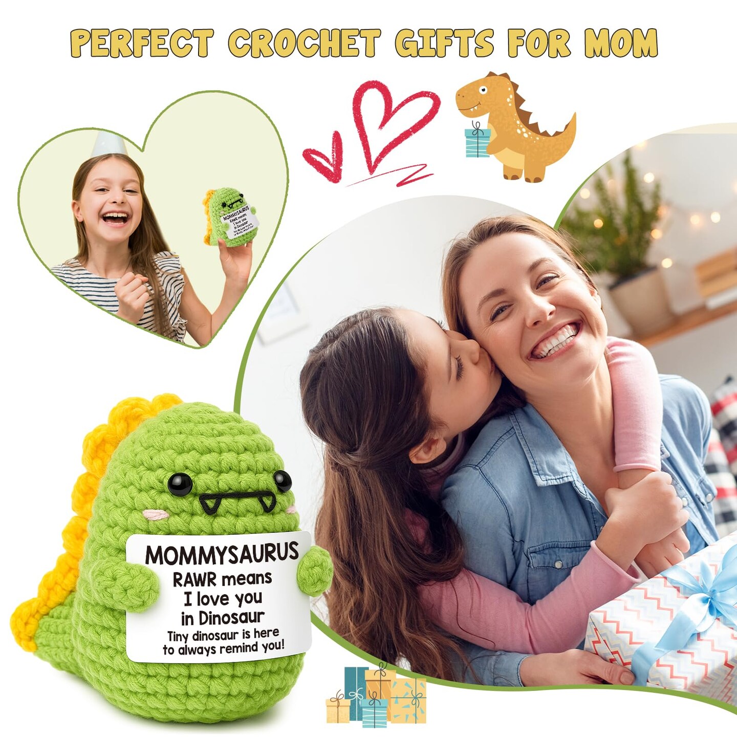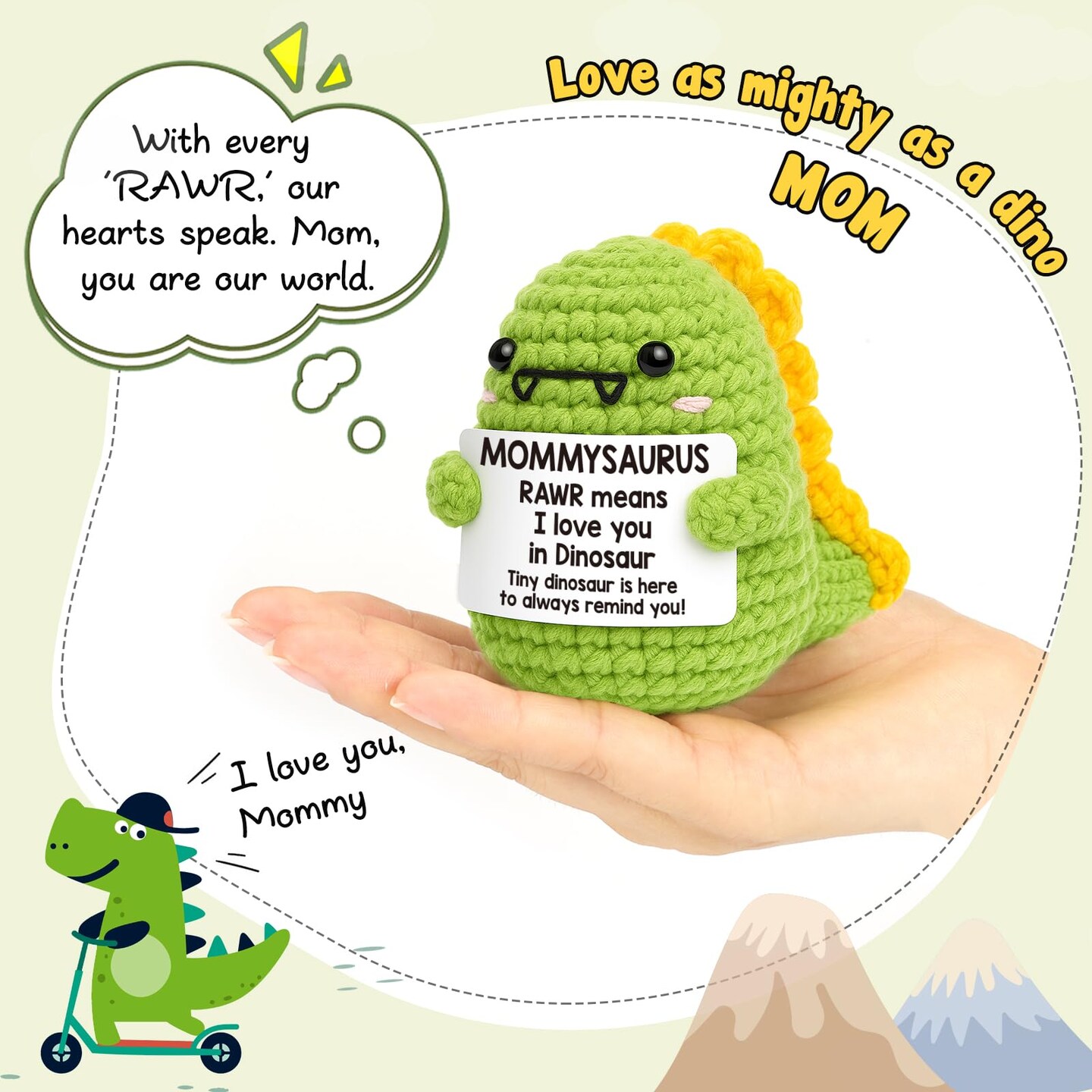 Mini Mothers Day Birthday Gifts for Mom I Love You Mommy Mother's Day Handmade Crochet Dinosaur Gift for Mama Mother- in- Law New Bonus Step Moms Best Mother Ever Gift from Daughter Son Husband