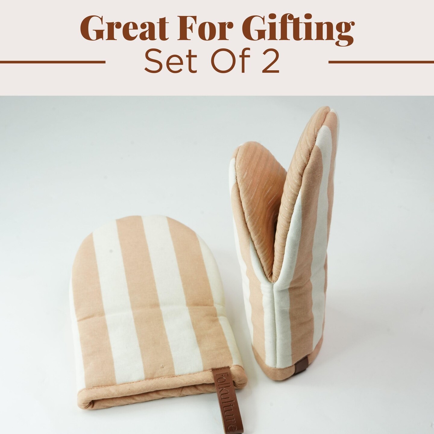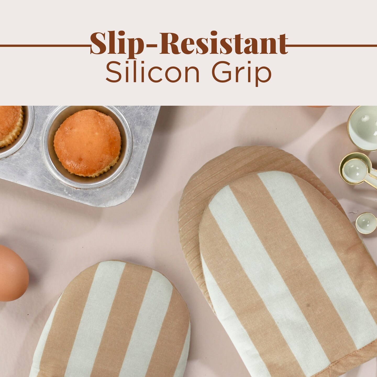 Mini Oven Mitts Heat Resistant | (5.75 x9) Set of 2 Latte Short Oven Mitts with Hanging Loop | 100% Cotton Oven Gloves | Kitchen Mittens, Latte Small Silicone Oven Mits