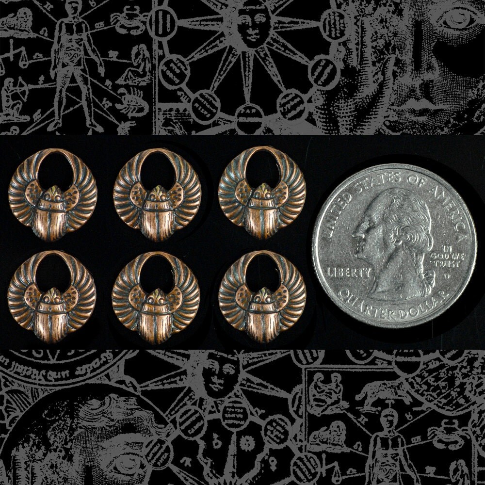 Mini Scarab Charms Antiqued Copper Plated Brass - Set of Six - C-C32