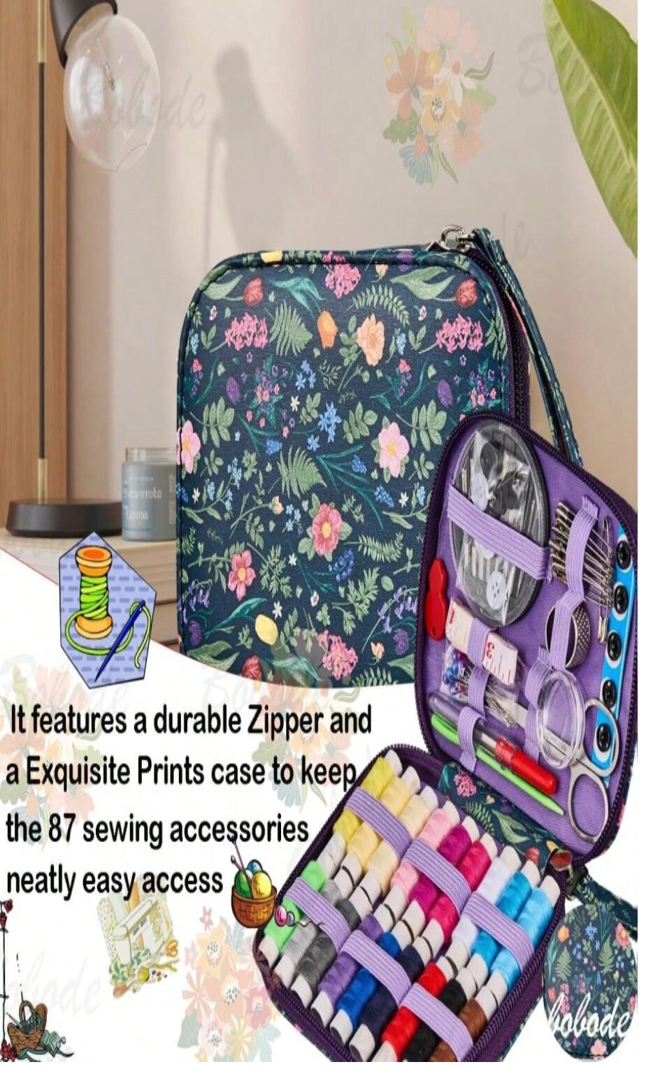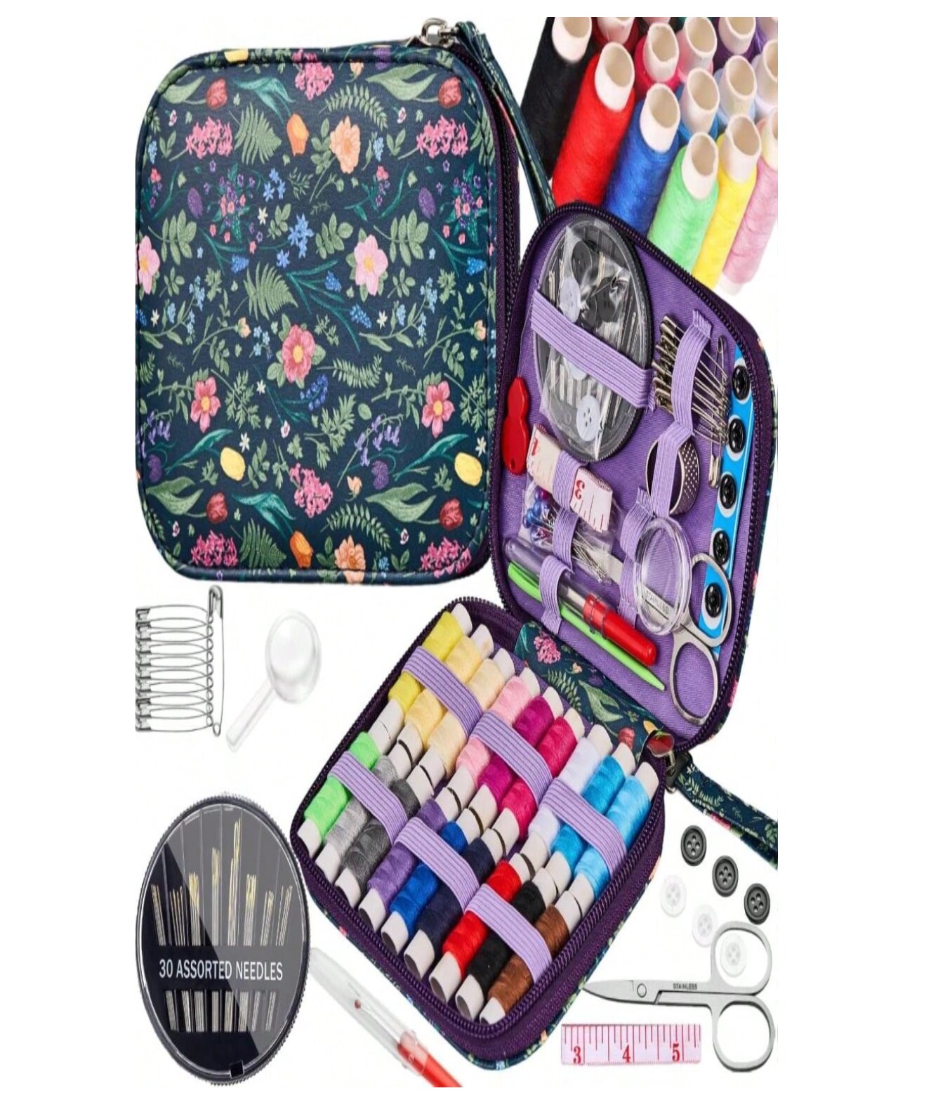 Mini Sewing Project Kit – Portable Tulip Pattern Needle & Thread Set for Travel, Home, Crafts & DIY