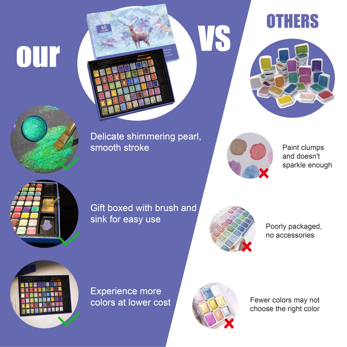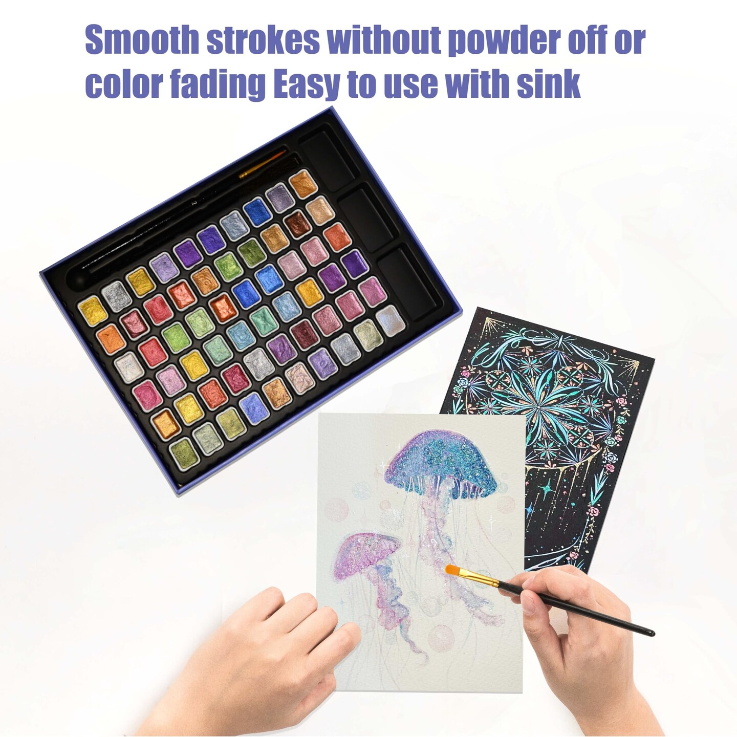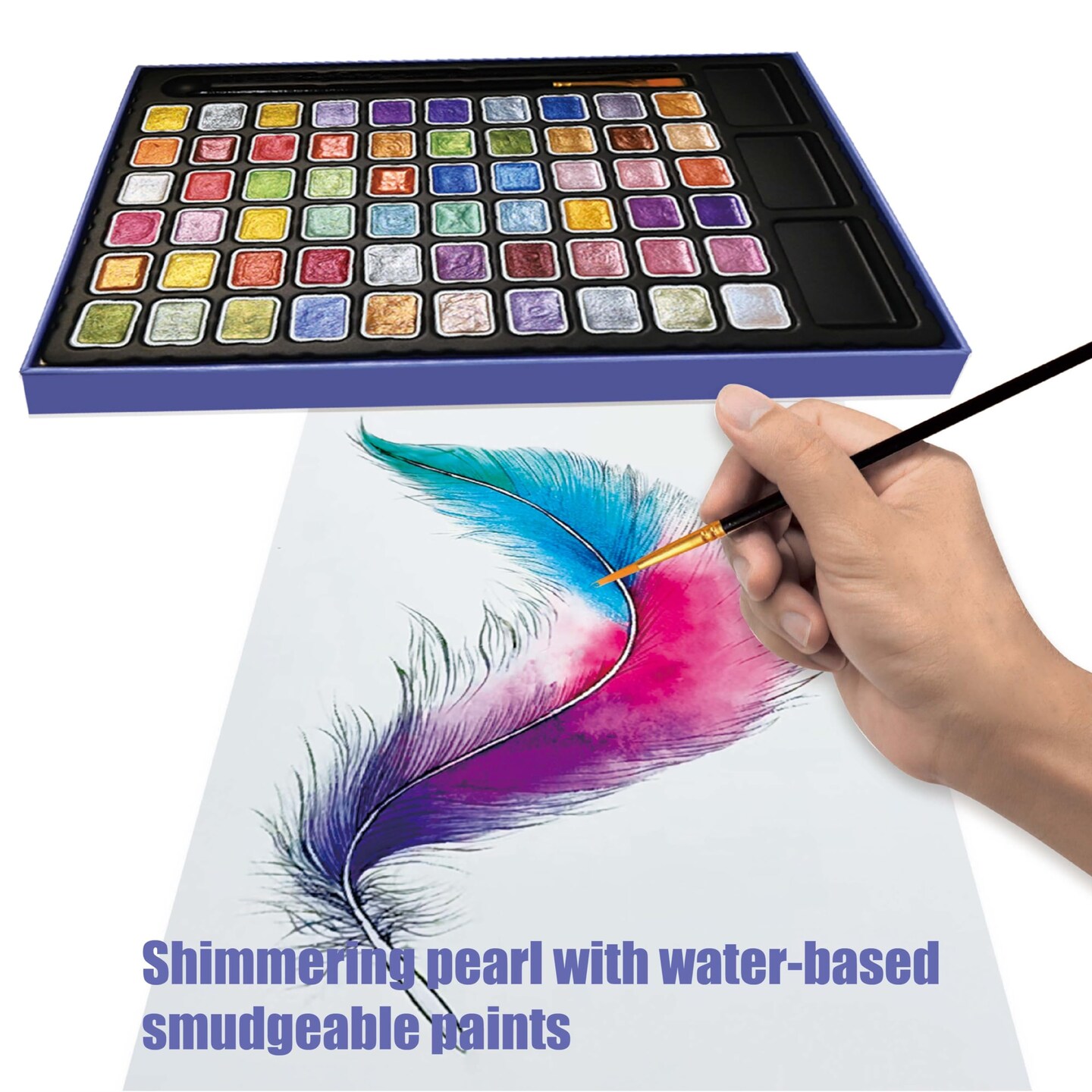 Mini Shimmer Watercolor Paint Set, 60 Colors Glitter Metallic Watercolour Painting Sets, Solid Pearl Water Color Paints for Artists, Amateur Hobbyists and Painting (60 Colours)