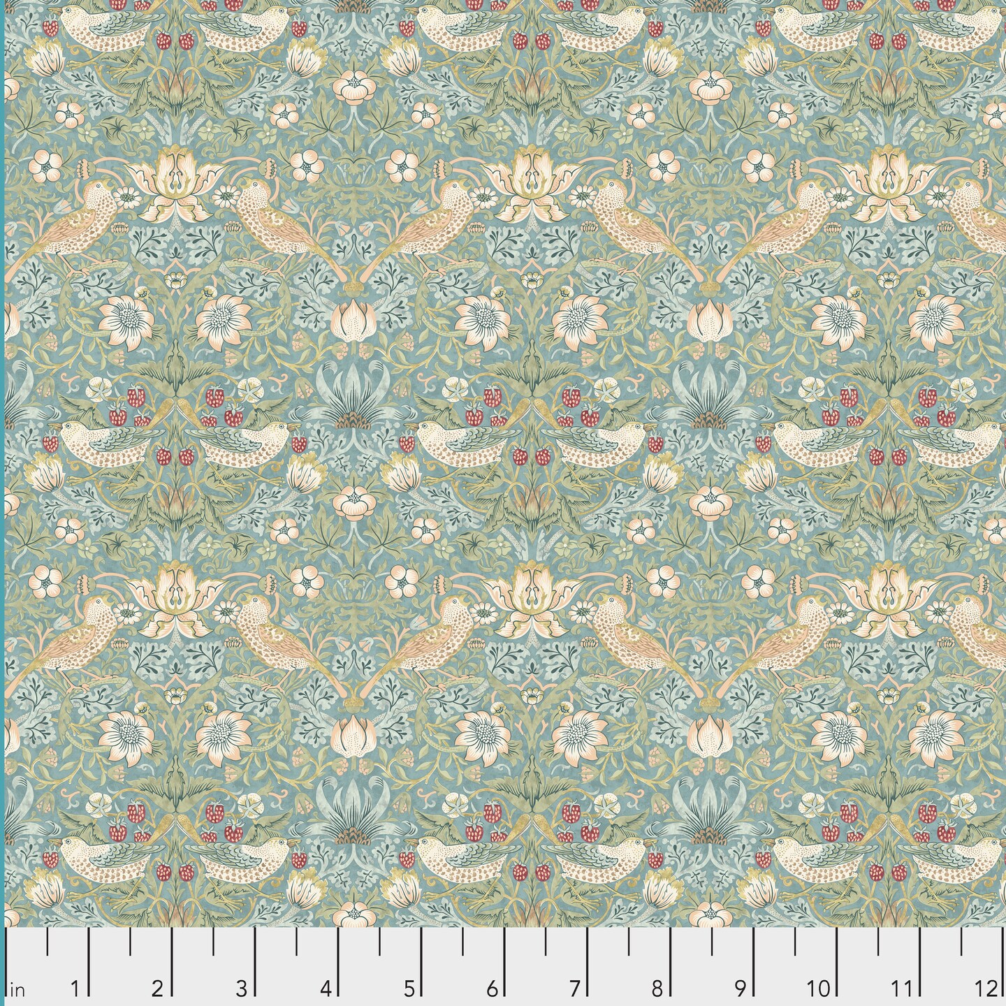 Mini Strawberry Thief in Aqua (pwwm002.aquax) | The Classics | The Original Morris & Co | Free Spirit