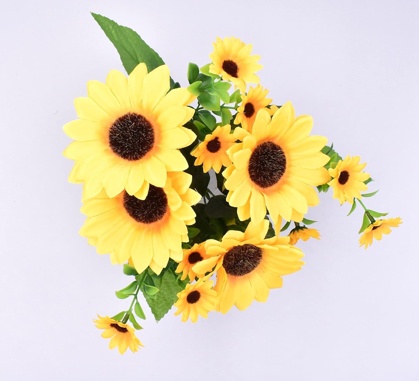 Mini Summer Sunflower Bouquet – Bright Yellow Silk Flowers with Stems & Eucalyptus for Home & DIY Decor