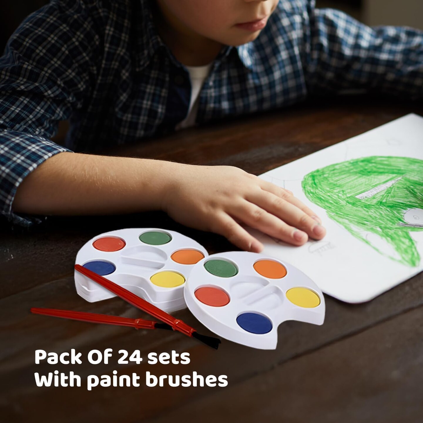 Mini Watercolor Paint Set for Kids - 24 Pack of Individual Watercolor Palettes in 5 Colors with Brush - Ideal for Party Favors, Prizes, Art Supplies