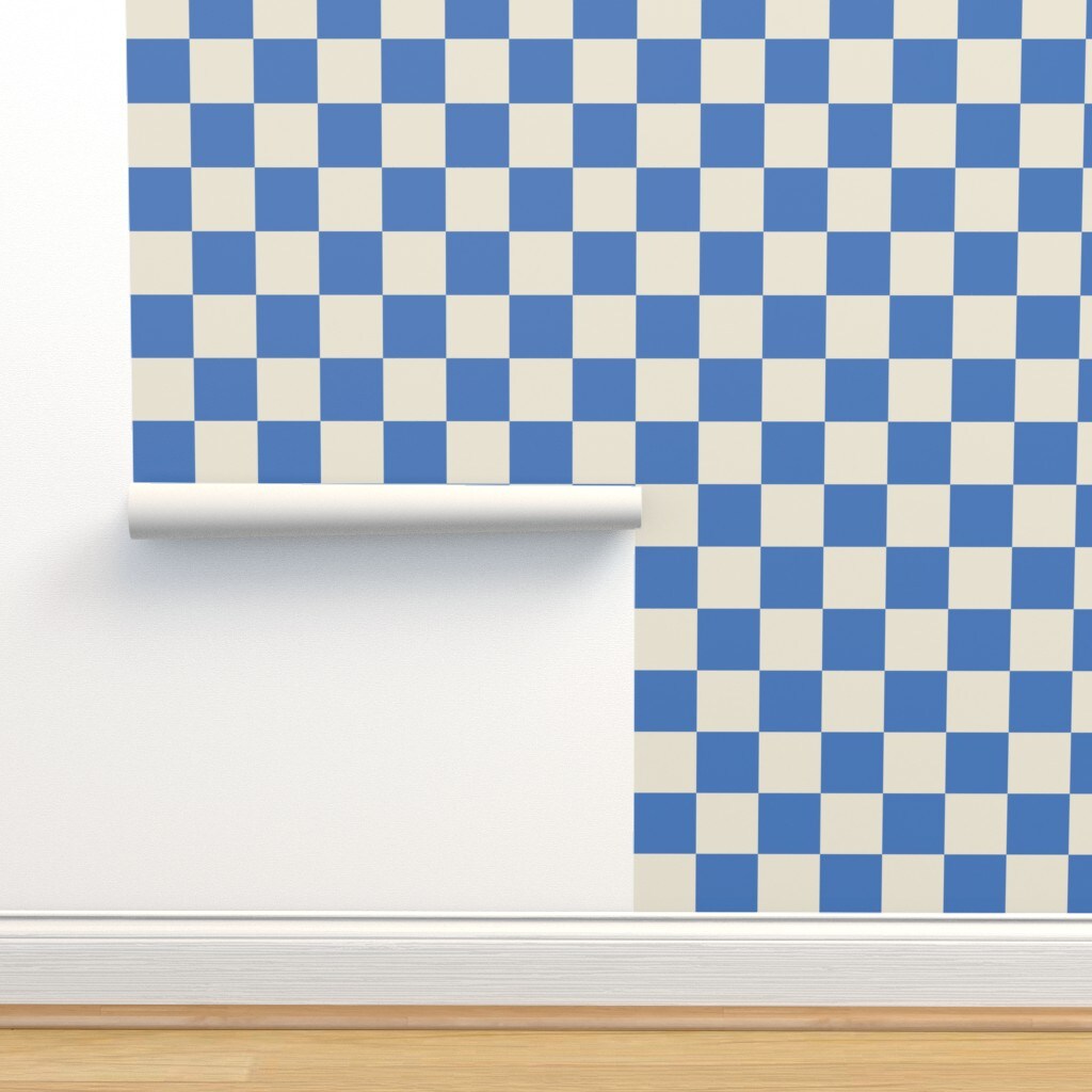 Minimal Cobalt Blue Retro Grid Checkerboard Custom Removable Wallpaper by Spoonflower Peel & Stick Wallpaper 2FT Wide
