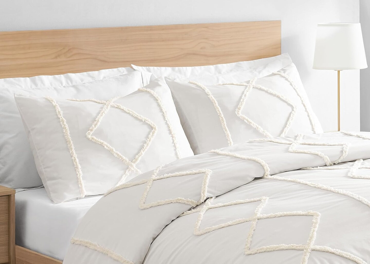 Minimalist Macrame Boho Chic Off White Set of 2 Pillow Cases (Off White)