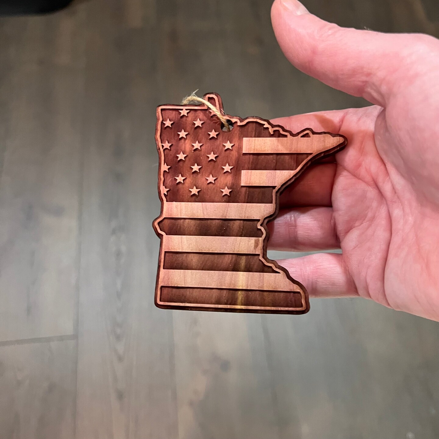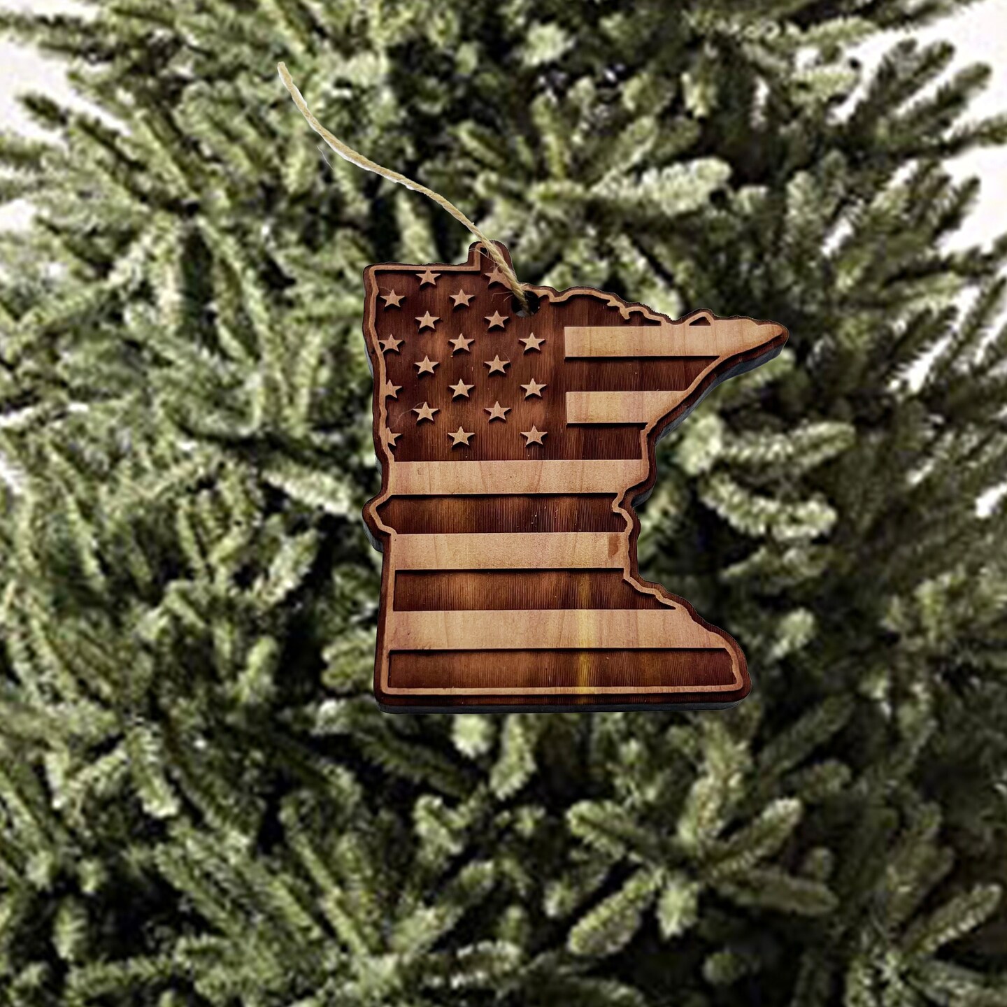 Minnesota and USA Flag - Cedar Ornament