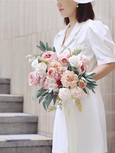 MISSPIN Wedding Artificial Flowers Combo Box Set for DIY Wedding Bridal Bouquets Fake Peony Flowers Leaf with Stems Centerpieces Arrangements Party Baby Shower Home Decorations(Champagne)