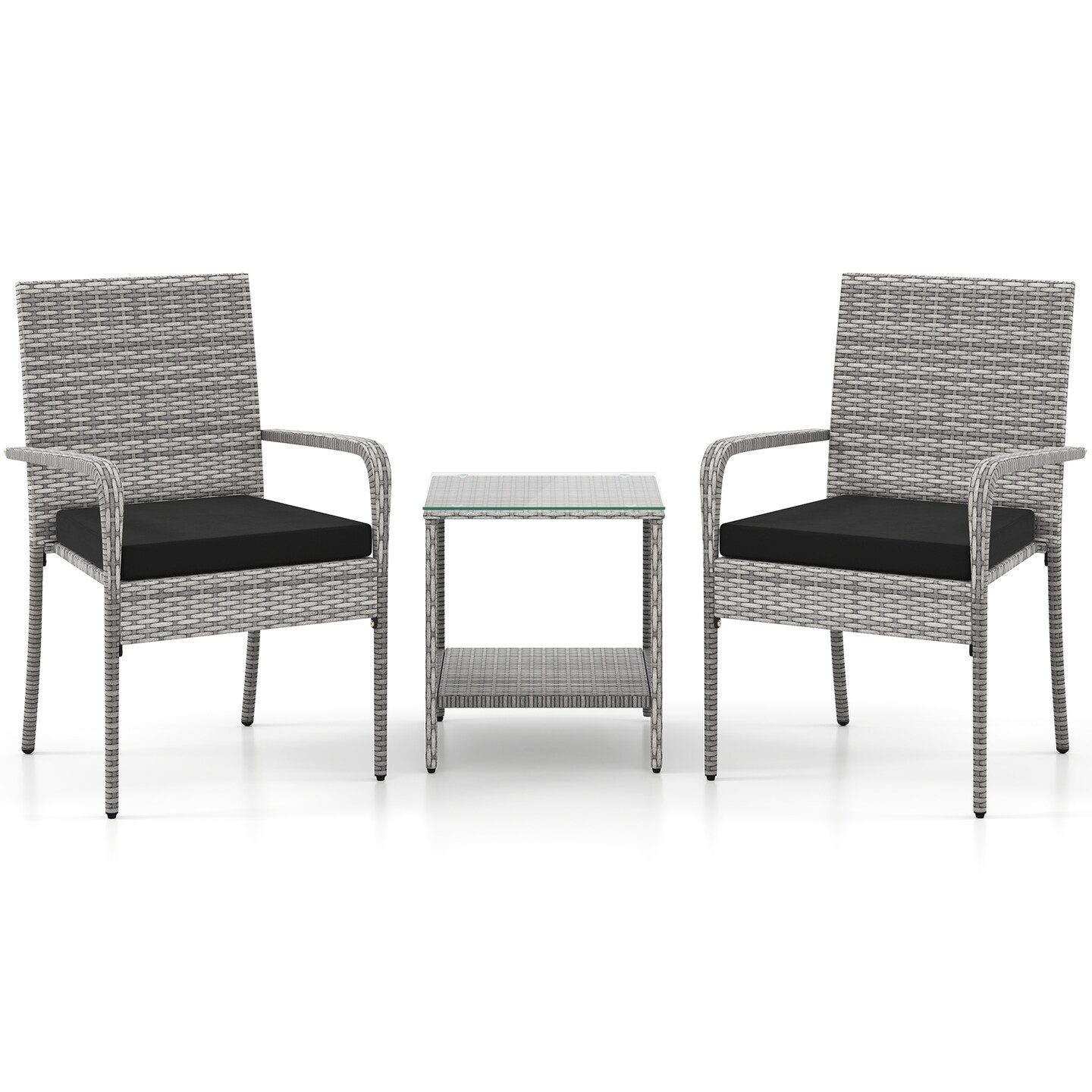 Mix Grey Rattan 3-Piece Patio Bistro Set with Cushions and Glass Table
