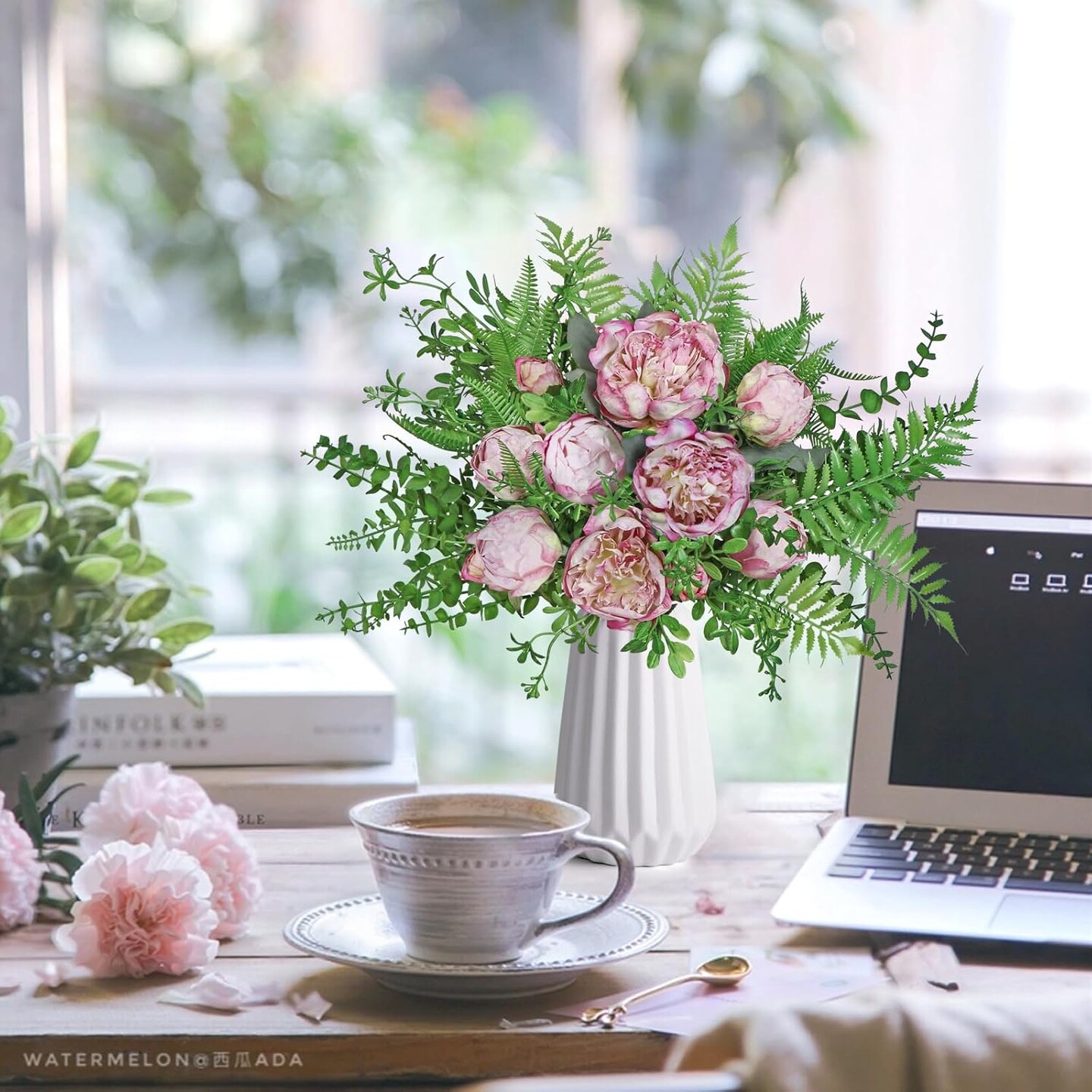 Mixed Eucalyptus Leaves Stems 12PCS, Artificial Plants Boston Fern Fake Branches Faux Shrub Bushes Greenery UV Resistant Plant for Vase Wedding Floral Outdoor Indoor Decor