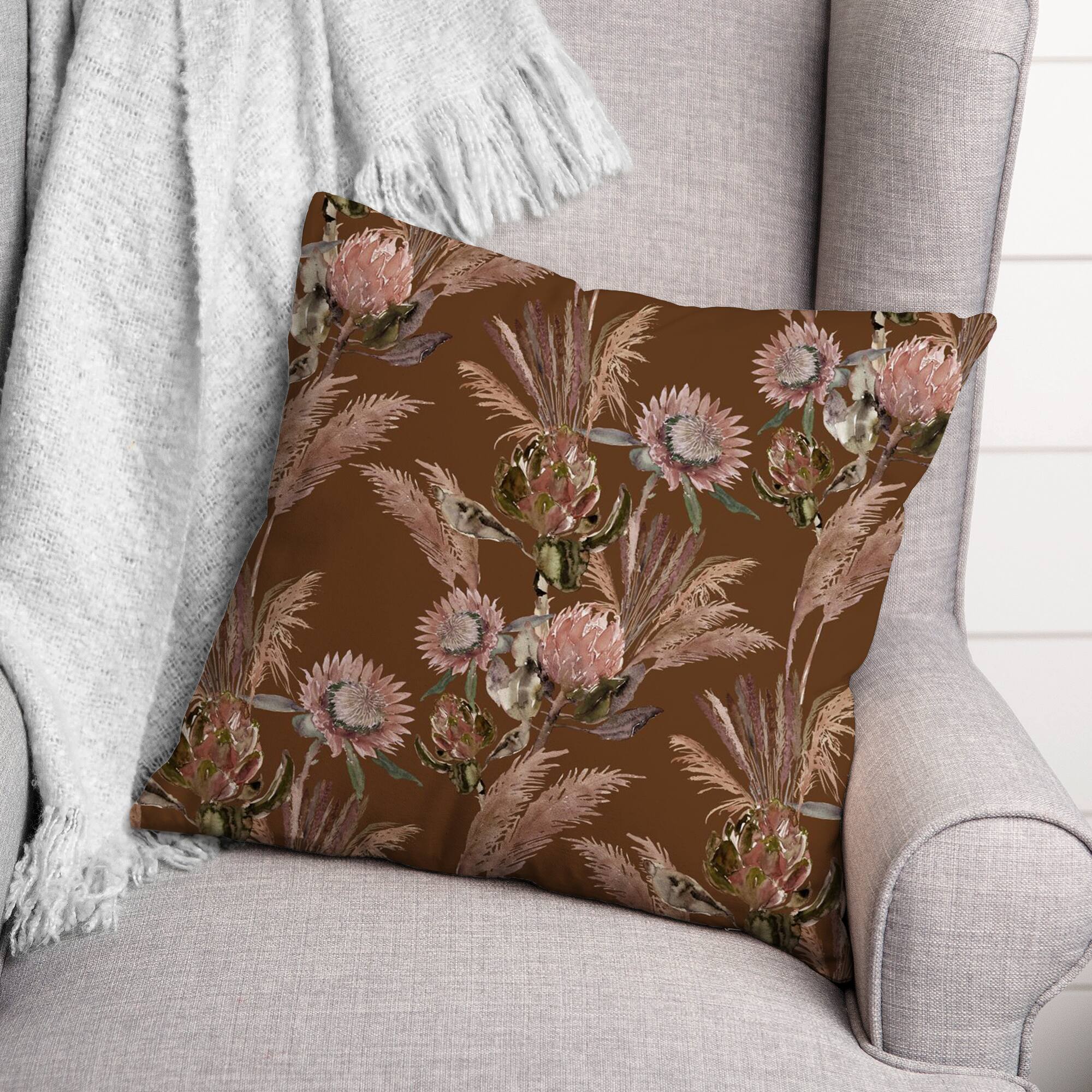 Mixed Protea Blooms Throw Pillow