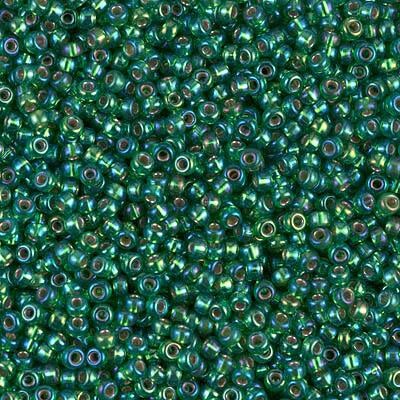 Miyuki 11 Round Seed Bead, 11-1016, Silver Lined Green AB, 13 grams