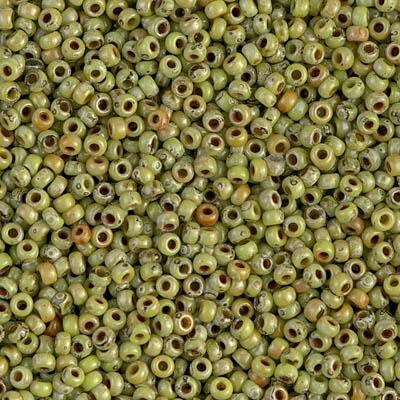 Miyuki 11 Round Seed Bead, 11-4515, Opaque Chartreuse Picasso, 13 grams