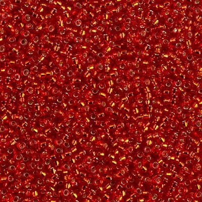 Miyuki 15/0 Round Seed Bead, 15-0010, Silverlined Flame Red, 8 grams