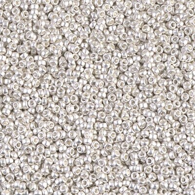 Miyuki 15/0 Round Seed Bead, 15-0961F, Matte Bright Sterling Plated, 8 grams