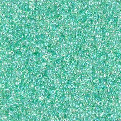 Miyuki 15/0 Round Seed Bead, 15-271, Light Mint Green Lined Crystal AB