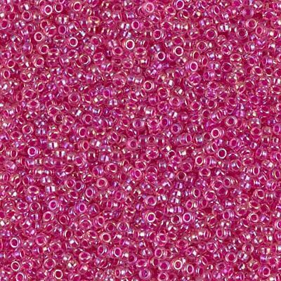 Miyuki 15/0 Round Seed Bead, 15-355, Hot Pink Lined Crystal AB