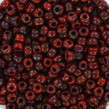 Miyuki 8 Round Seed Bead, 8-4520, Opaque Orange Picasso, 10 grams