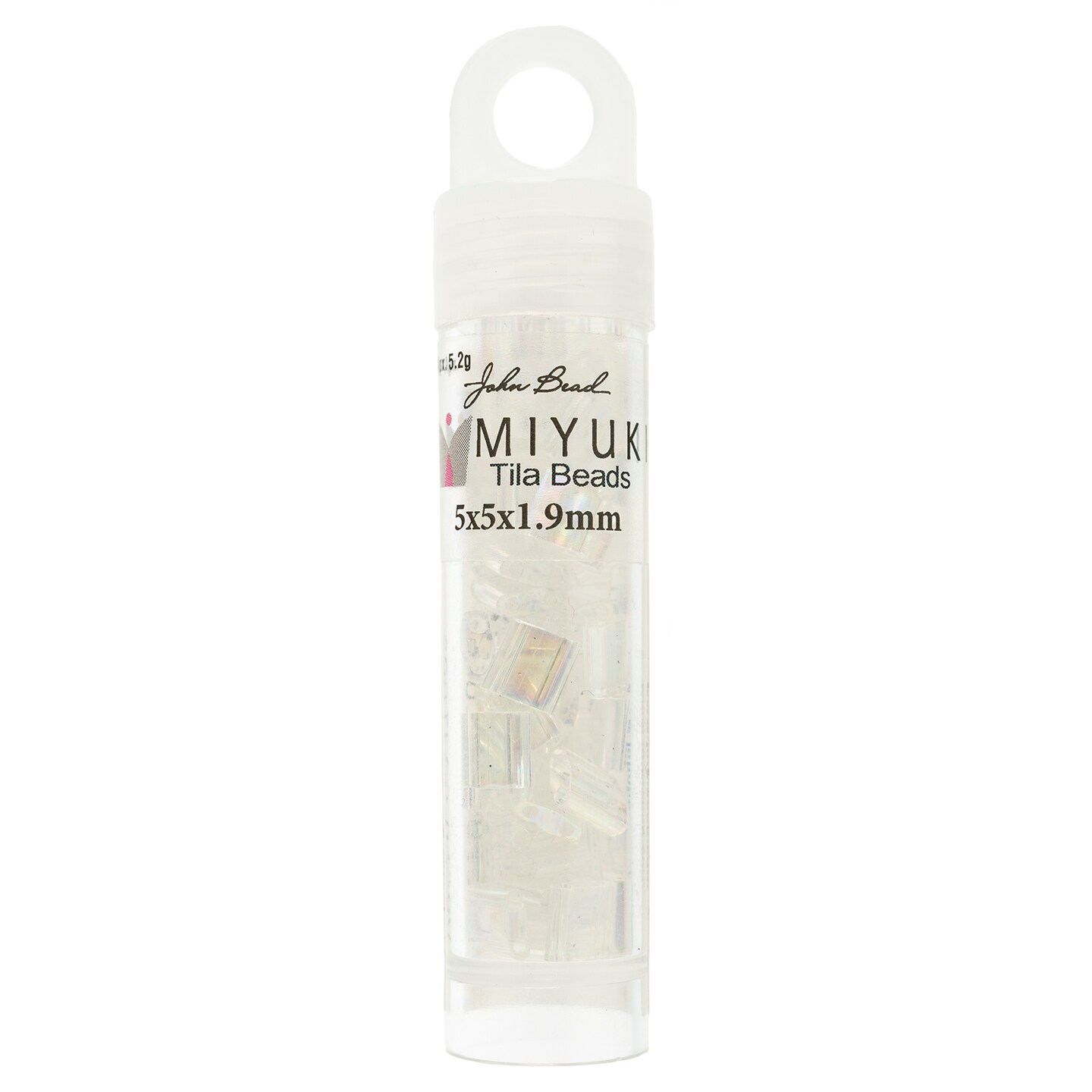 Miyuki Tila 5mm Transparent AB Glass Beads, 5.2g
