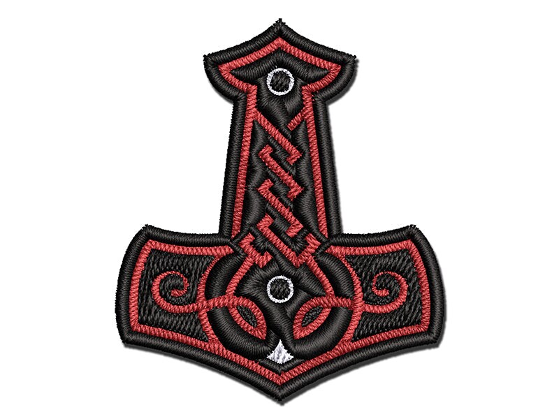 Mjolnir Symbol Norse Viking Hammer of Thor Multi-Color Embroidered Iron-On or Hook & Loop Patch Applique