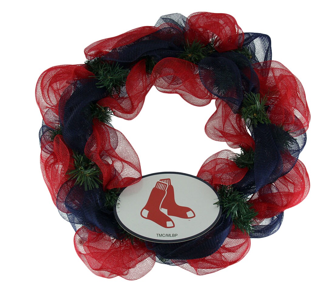 MLB Boston Red Sox Logo Mesh Holiday Door Wreath