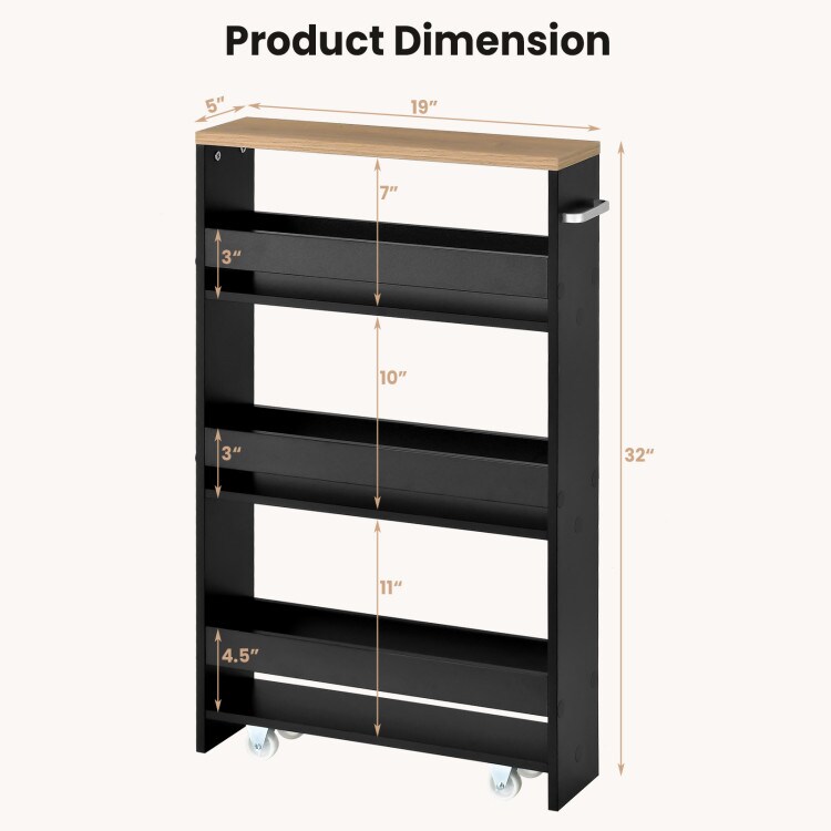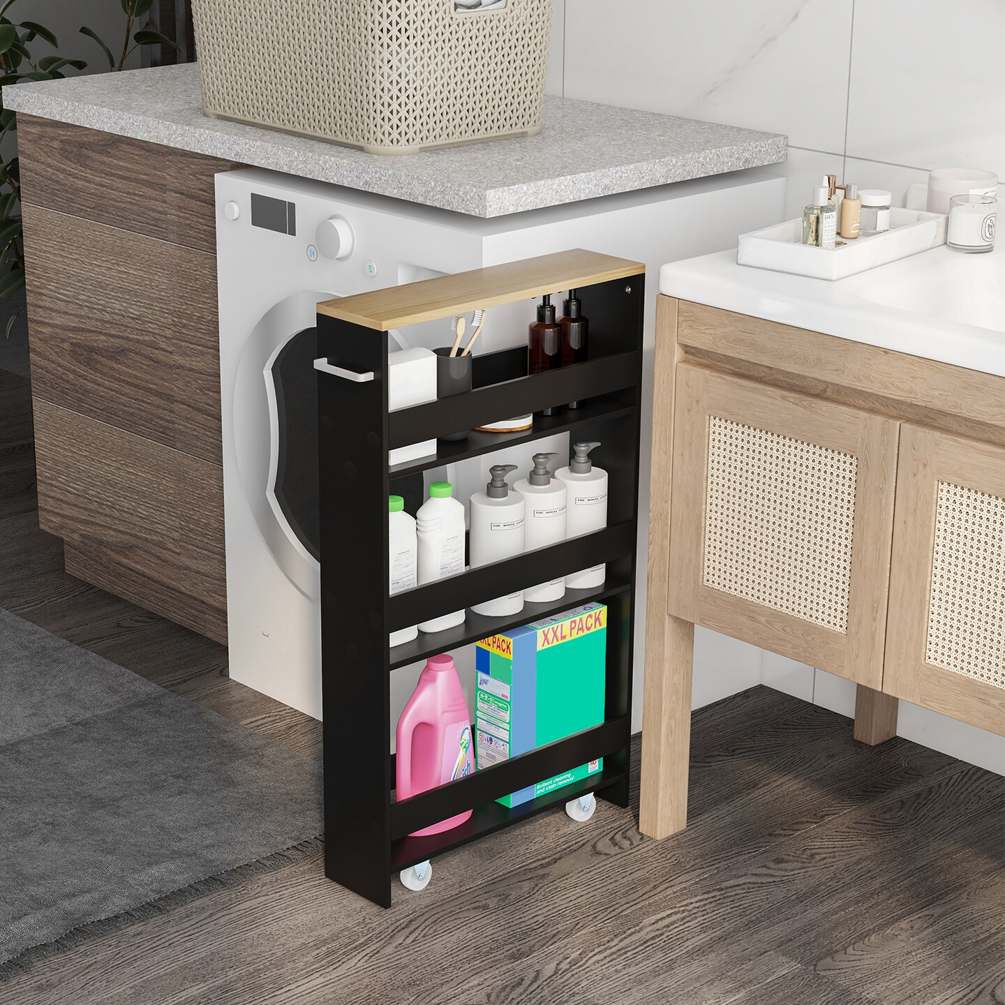 Mobile Rolling Cart with 3-Tier Storage Shelves Rack on Wheels for Kitchen or Bathroom