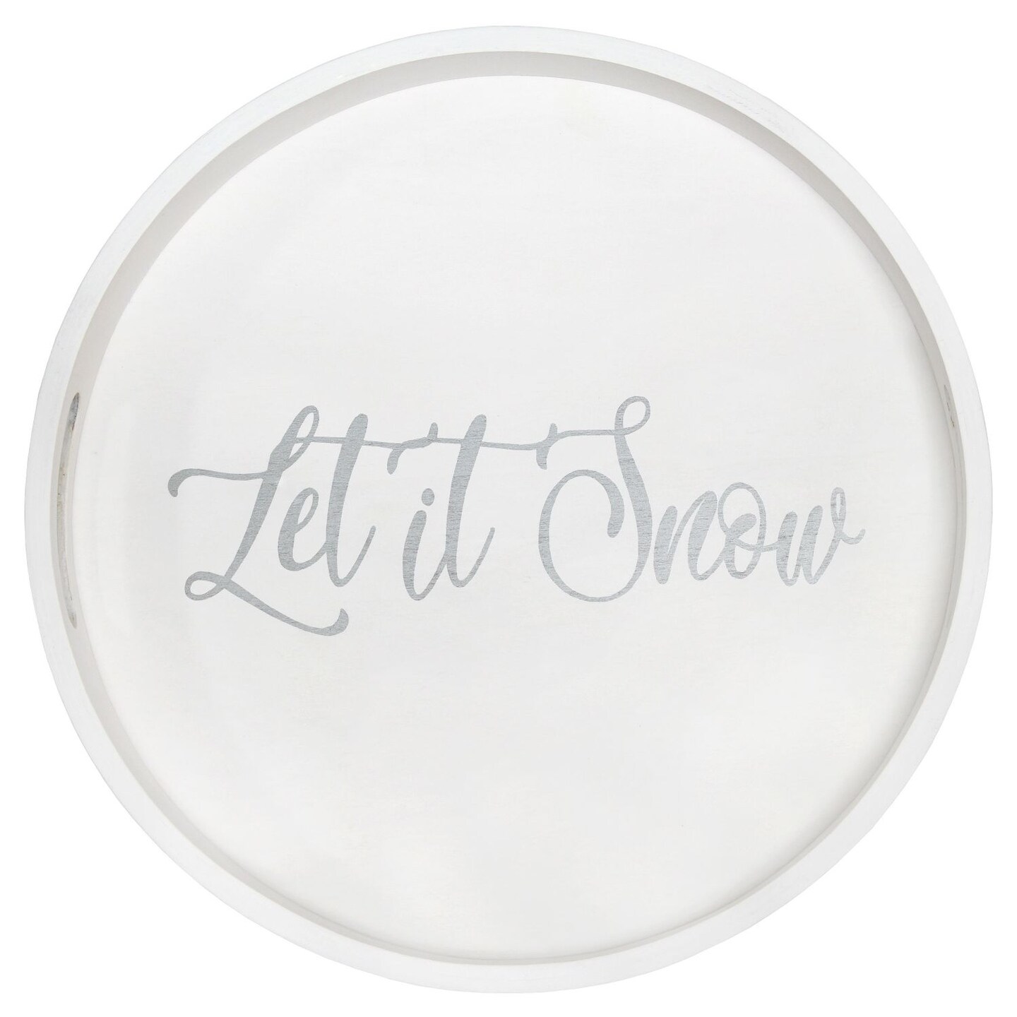 Mod Lighting and Decor "Let it Snow" Round Wooden Decorative Tray with Cutout Handles - 13.75" - White