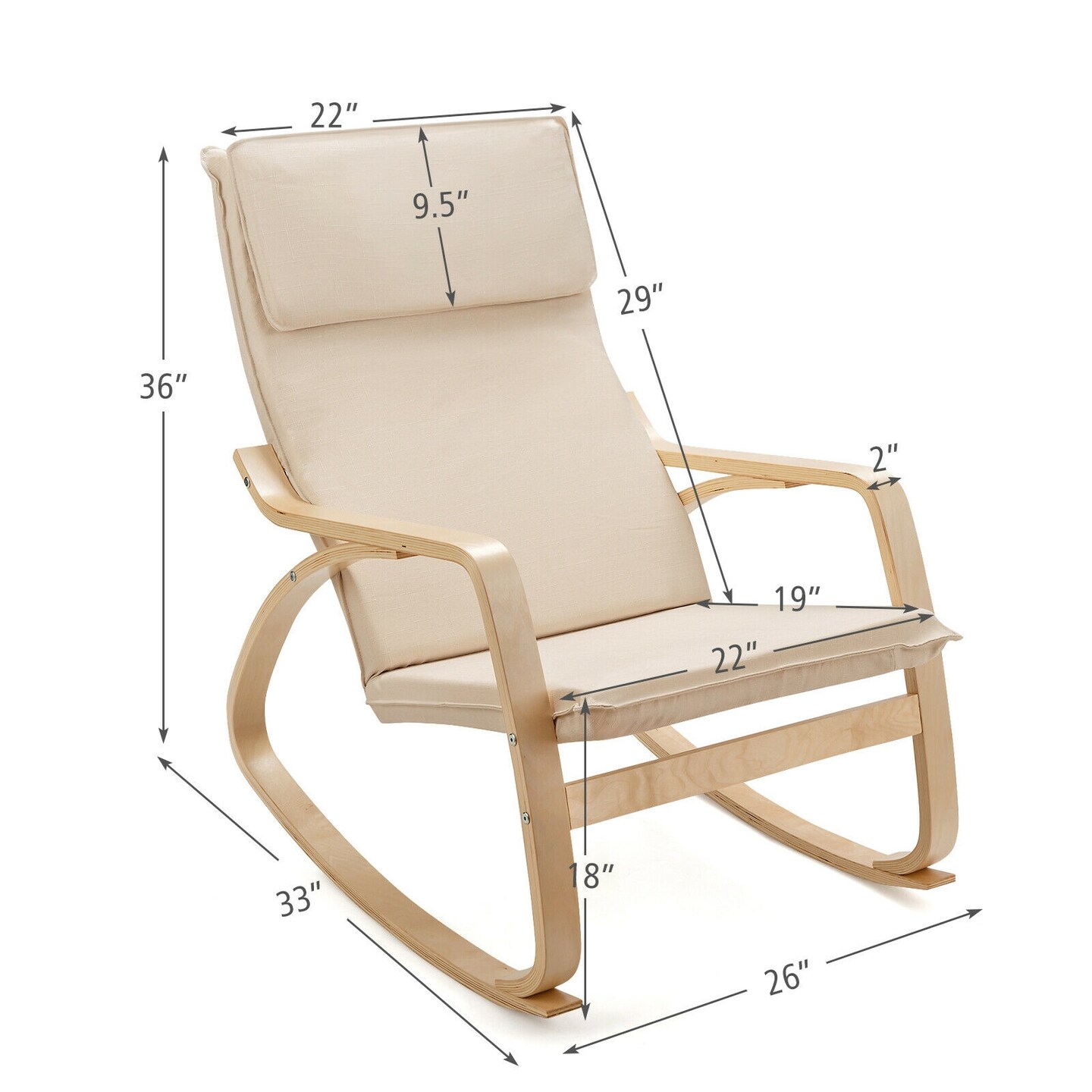 Modern Bentwood Rocking Chair Fabric Upholstered Relax Rocker Lounge Chair