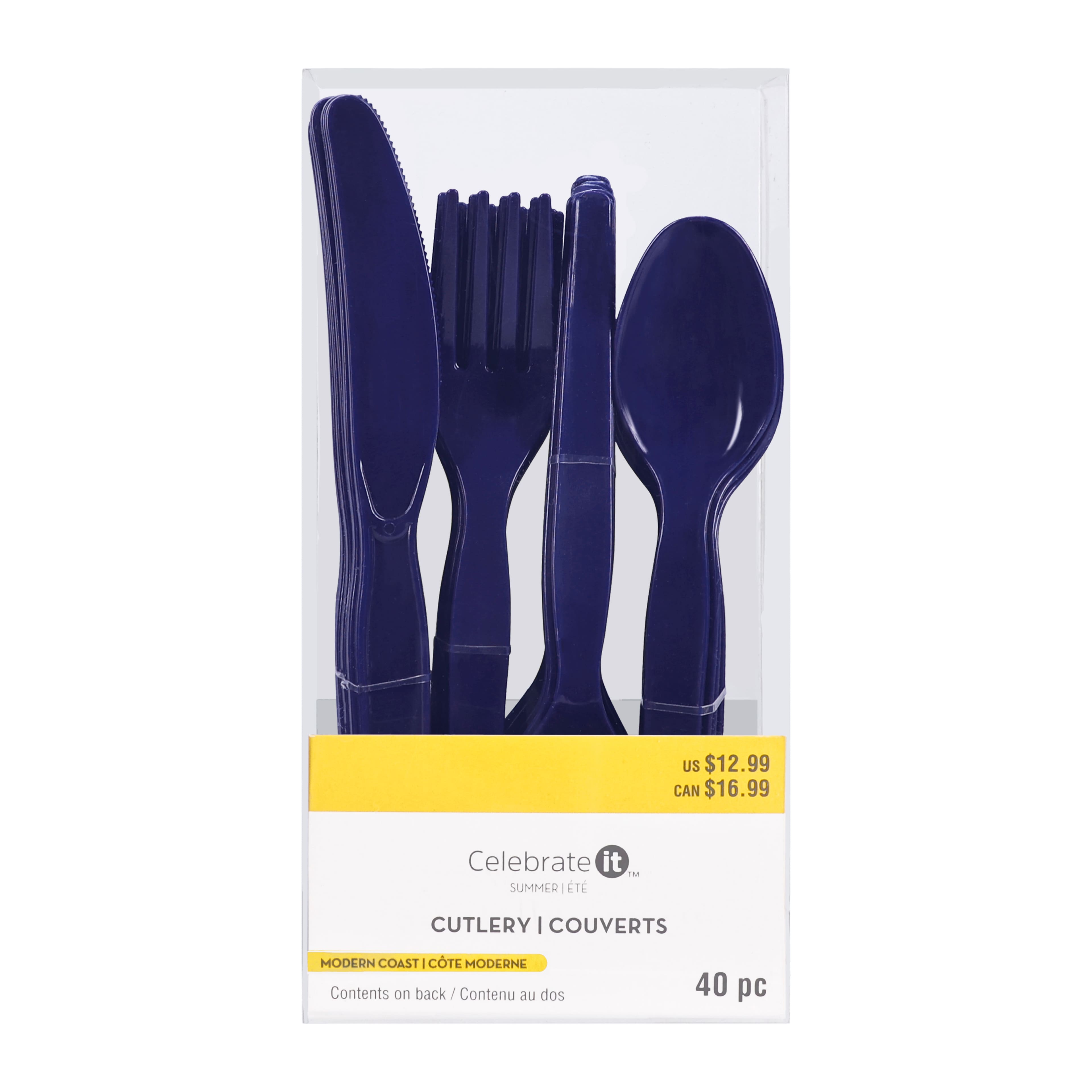 Modern Coast Blue Plastic Cutlery Set by Celebrate It™