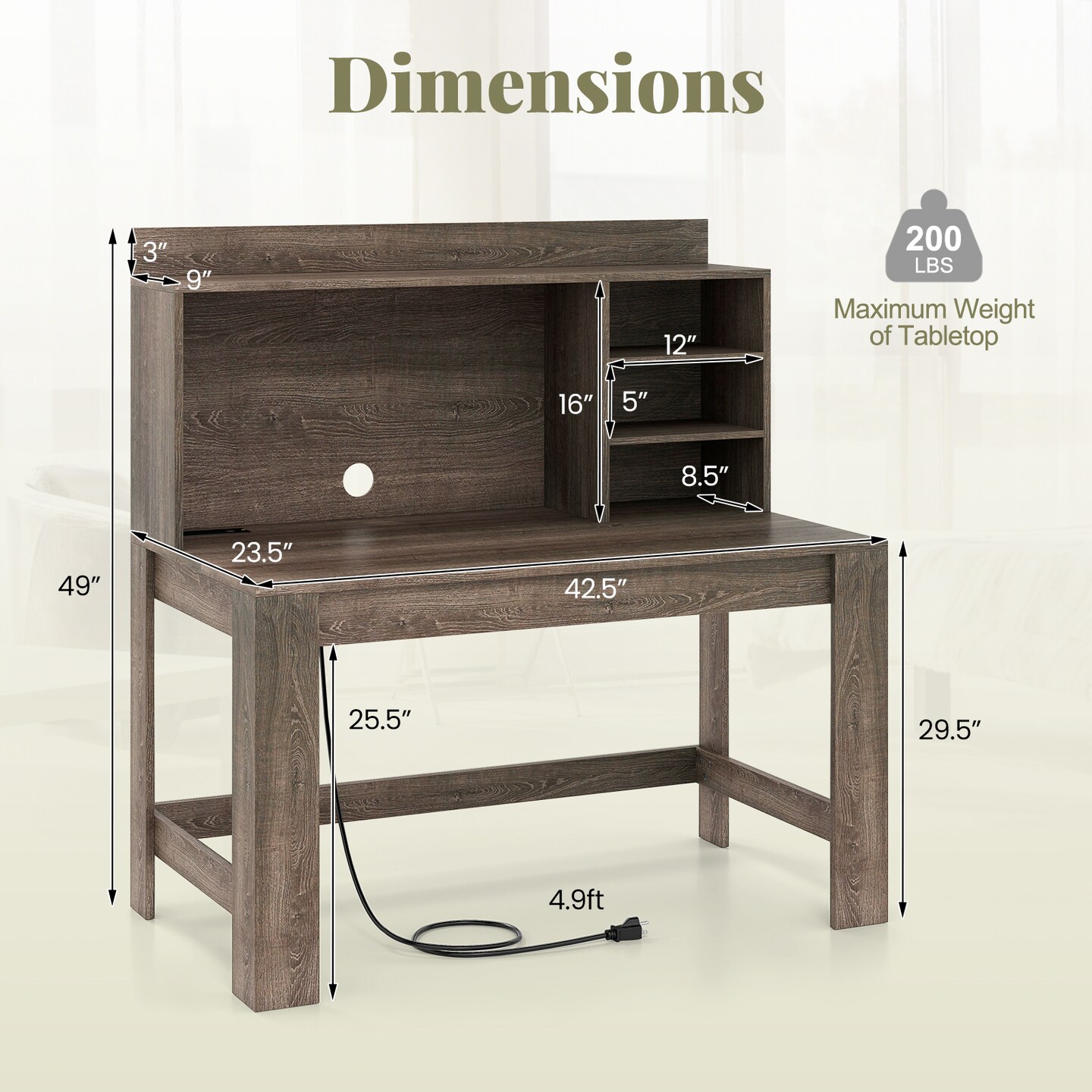 Modern Computer Desk with Hutch Built In Charging Station Storage Shelves