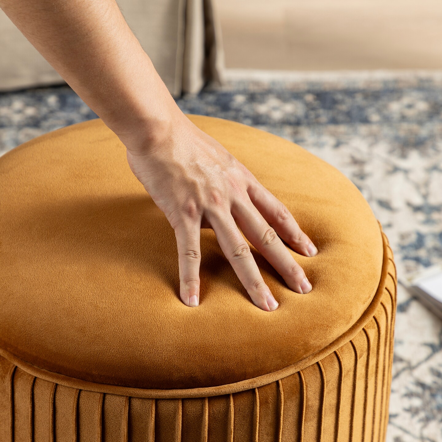 Modern Dusty Pleated Velvet Upholstered Storage Ottoman or Accent Stool with Rubberwood Ball Feet