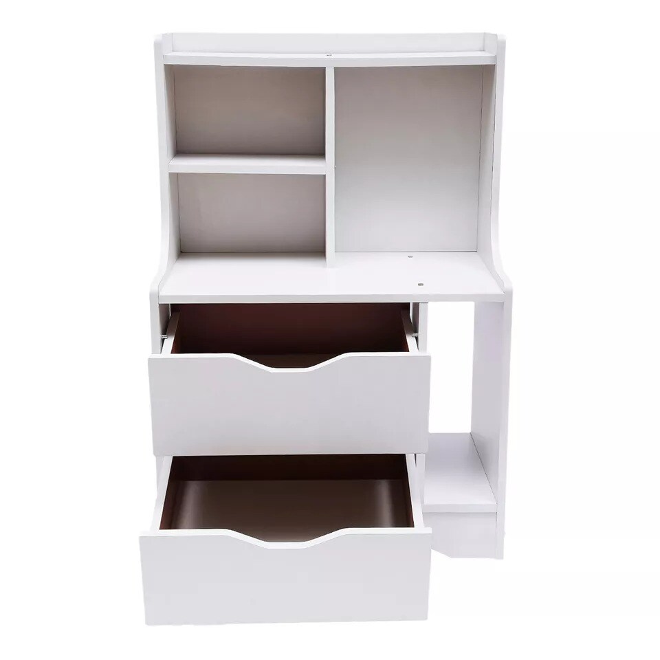 Modern End Side Table Bedroom Bedside Nightstand Cabinet With 2 Storage Drawers