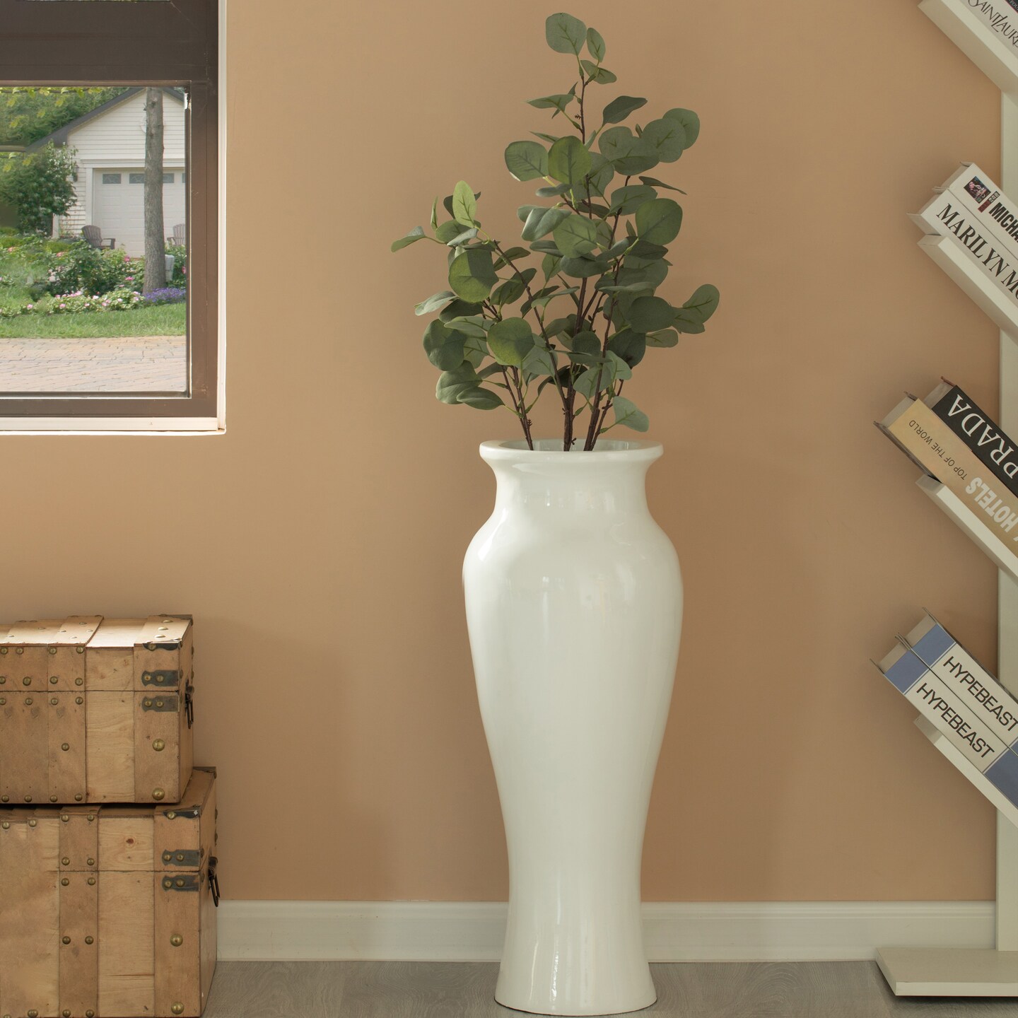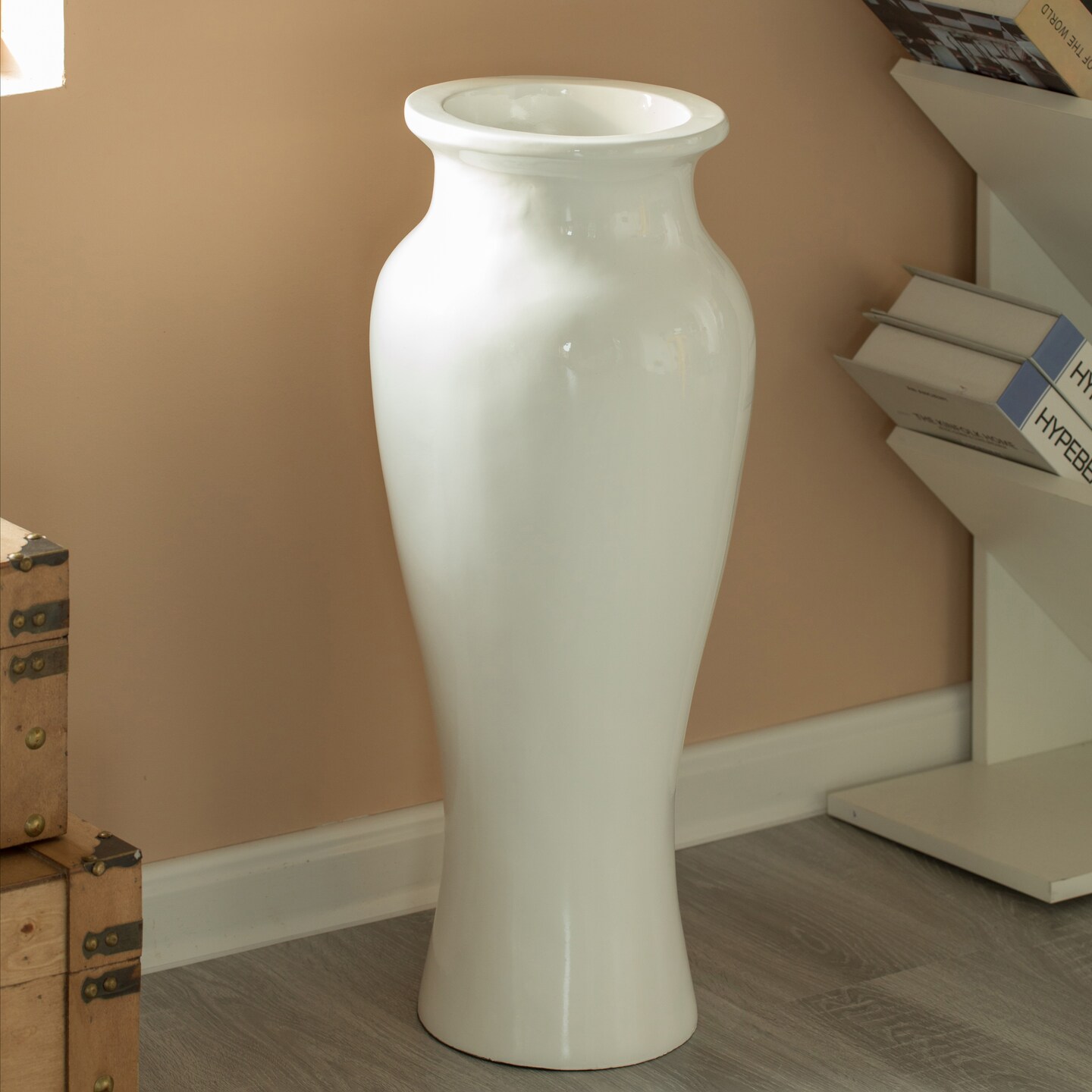 Modern floor vase, White Unique Trumpet Floor Vase, Home Interior Decoration, Modern Floor Vase, Tall Floor Vases for Entryway and Living Room and Office, 24 inch