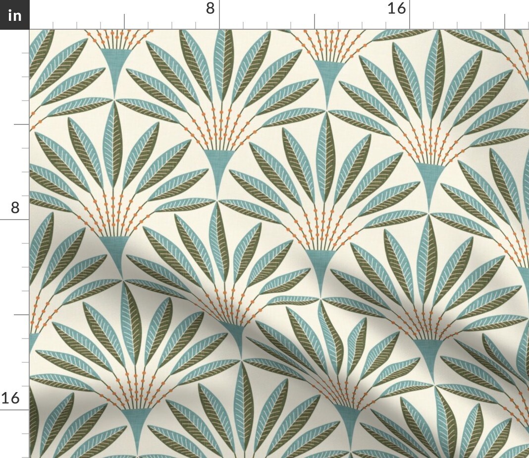 Modern Geometric Teal Green Orange Bold Linen Texture Retro Scallop Fans Custom Printed Fabric by Spoonflower Various Fabrics by the Yard or Fat Quarter