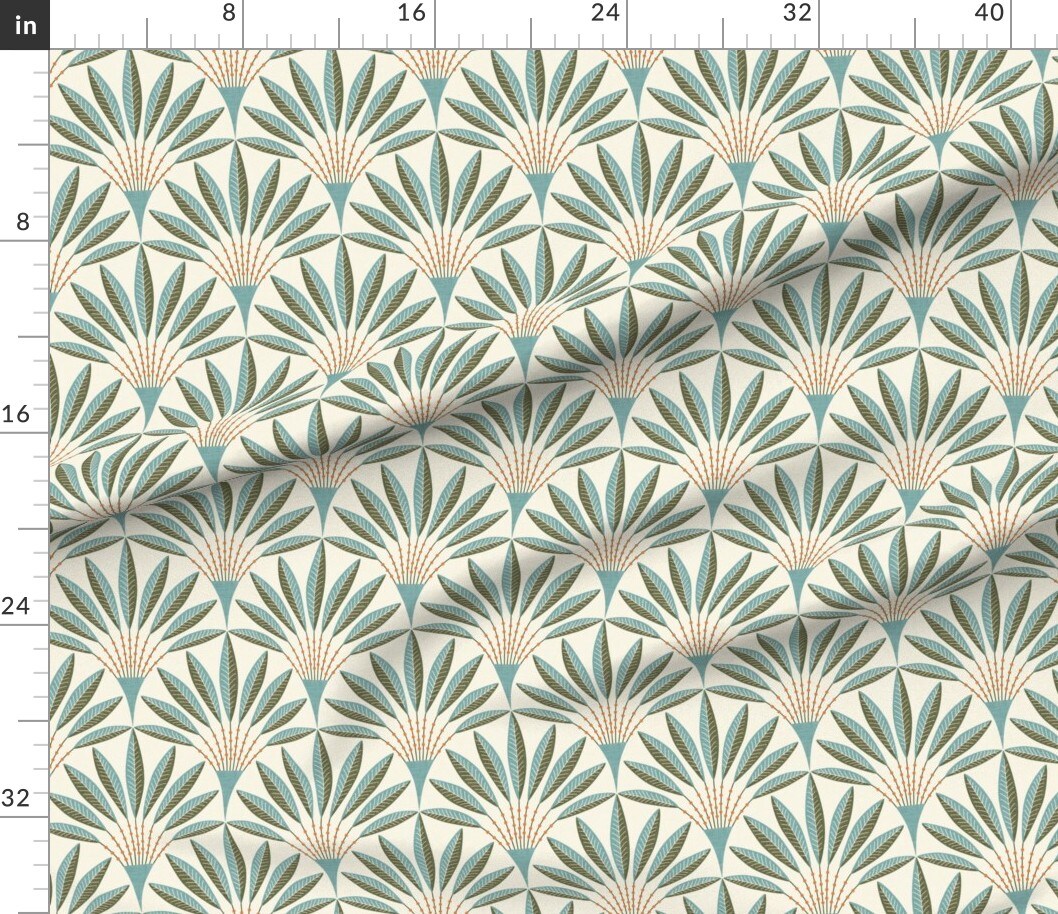 Modern Geometric Teal Green Orange Bold Linen Texture Retro Scallop Fans Custom Printed Fabric by Spoonflower Various Fabrics by the Yard or Fat Quarter
