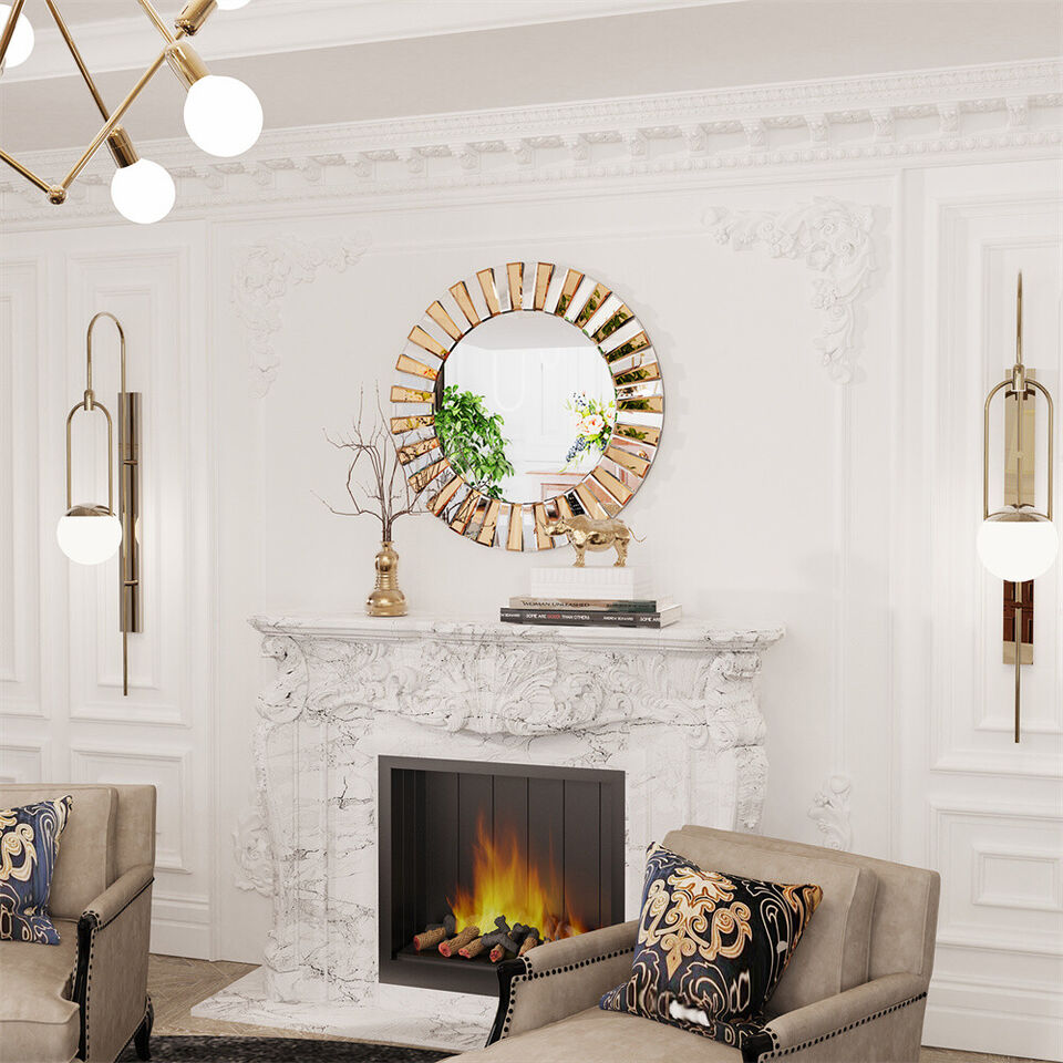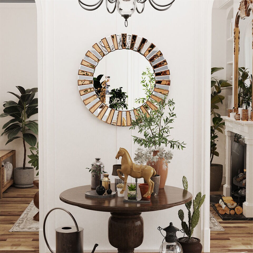 Modern Glam Circular Sunburst Wall Mirror Round 3D Accent Mirror.