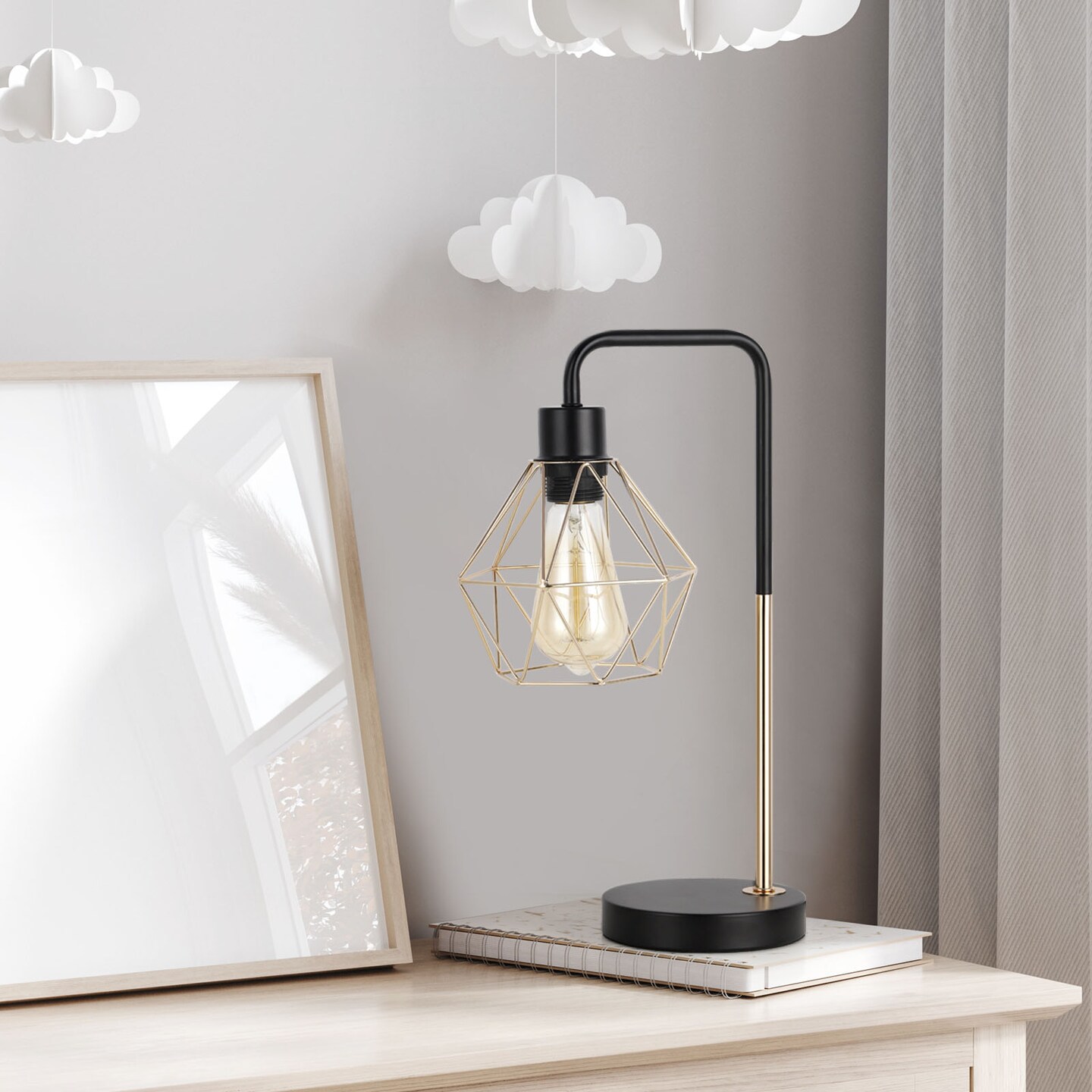 Modern Gold Geometric Table Lamp Diamond Cage Shade Bedside Light for Bedroom, Office, or Living Room UL Certified, E26 Bulb Compatible, Elegant Industrial Decor
