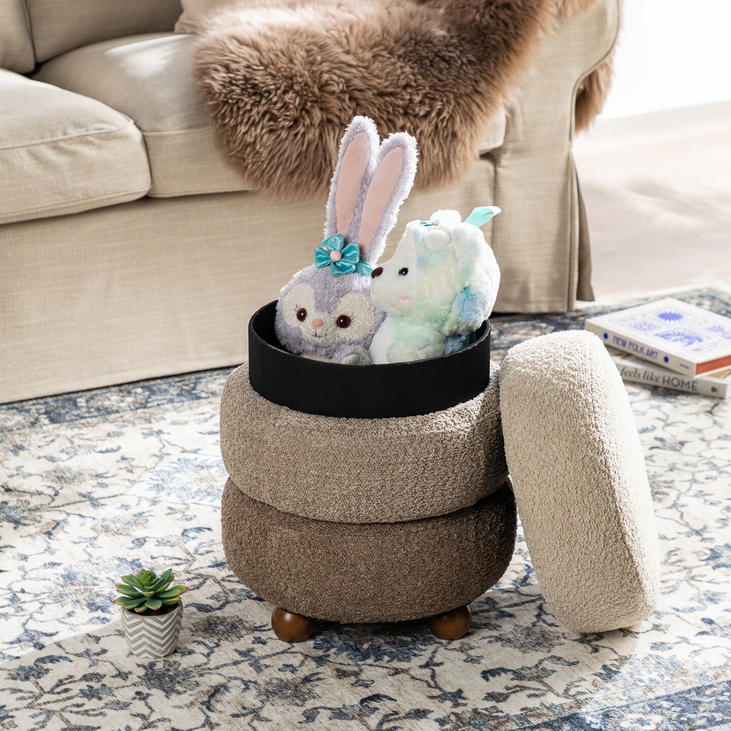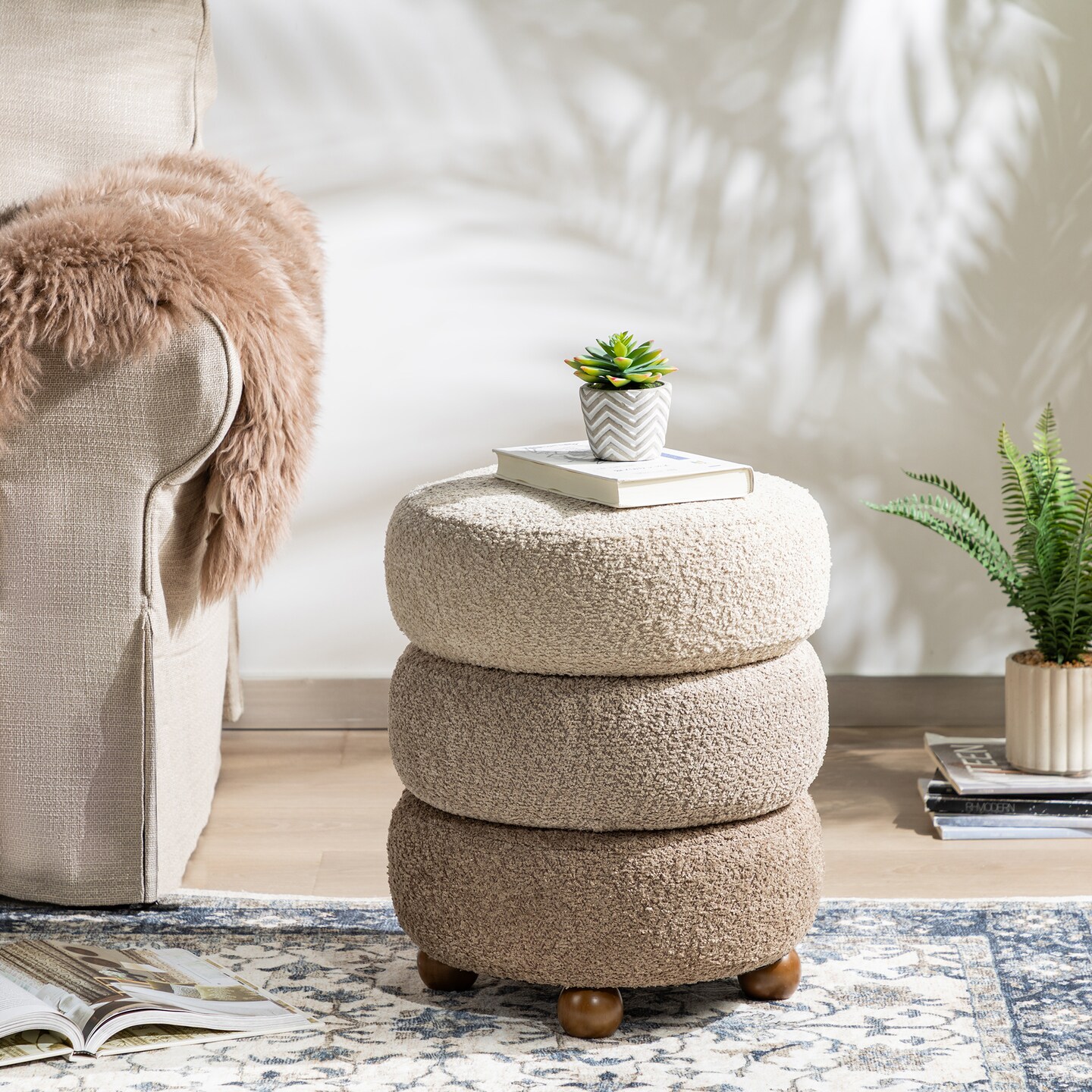 Modern Gradient Upholstered Storage Ottoman or Accent Stool with Rubberwood Ball Feet