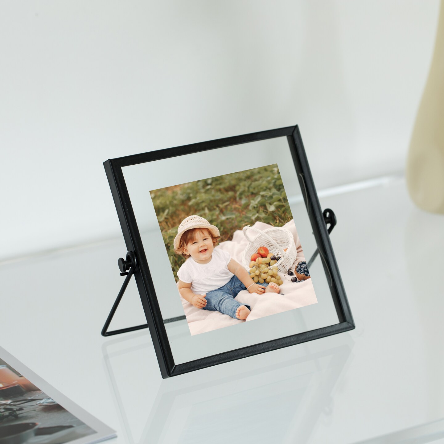 Modern Metal Floating Tabletop Photo Picture Frame with Glass Cover and Easel Stand