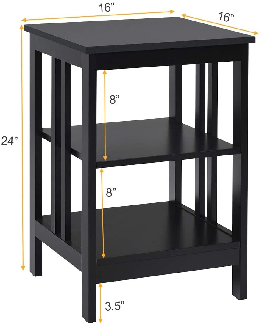 Modern Nightstand 2 Pack MDF 3 Tier Storage End Table