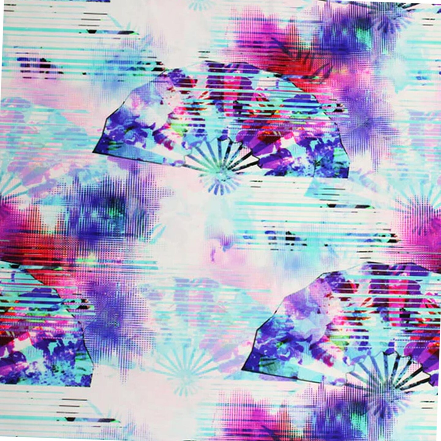 Modern Pastel Asian Fans Printed Spandex Fabric