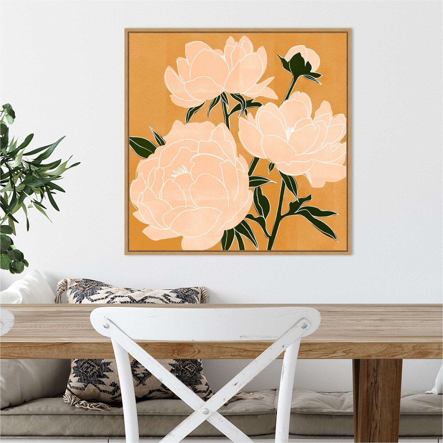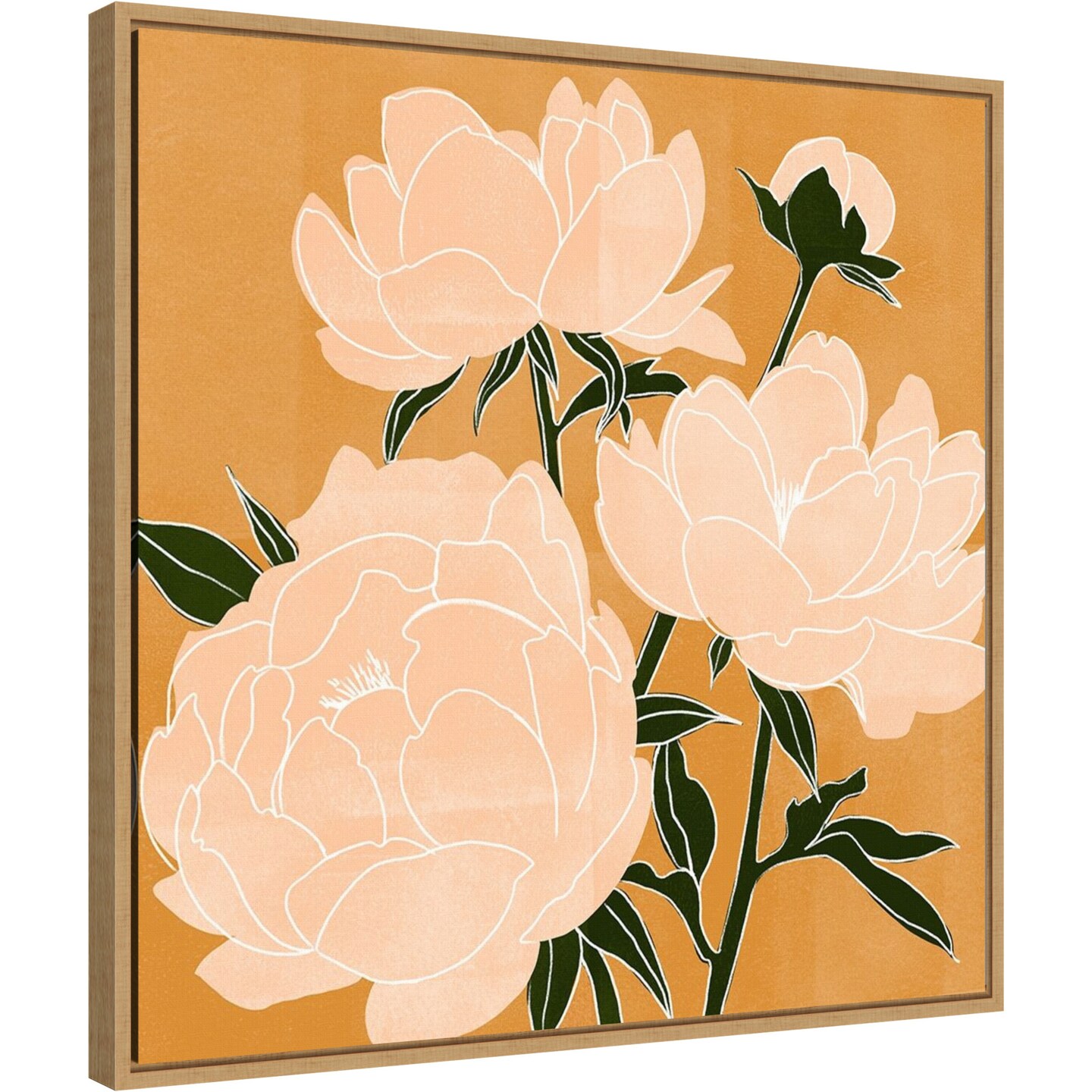 Modern Peonies II by Emma Scarvey 22-in. W x 22-in. H. Canvas Wall Art Print Framed in Natural